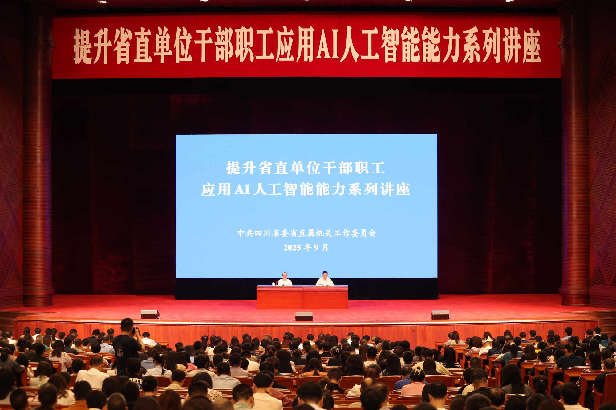 9月24日,成都市錦江大禮堂座無虛席,“提升四川省直單位干部職工應用AI人工智能能力系列講座”第一課正式開講。1200余名來自省直單位的干部職工濟濟一堂,聆聽電子科技大學教授、博士生導師李文帶來的生動講授,共同了解人工智能的起源與發(fā)展,學習相關知識及應用技能。