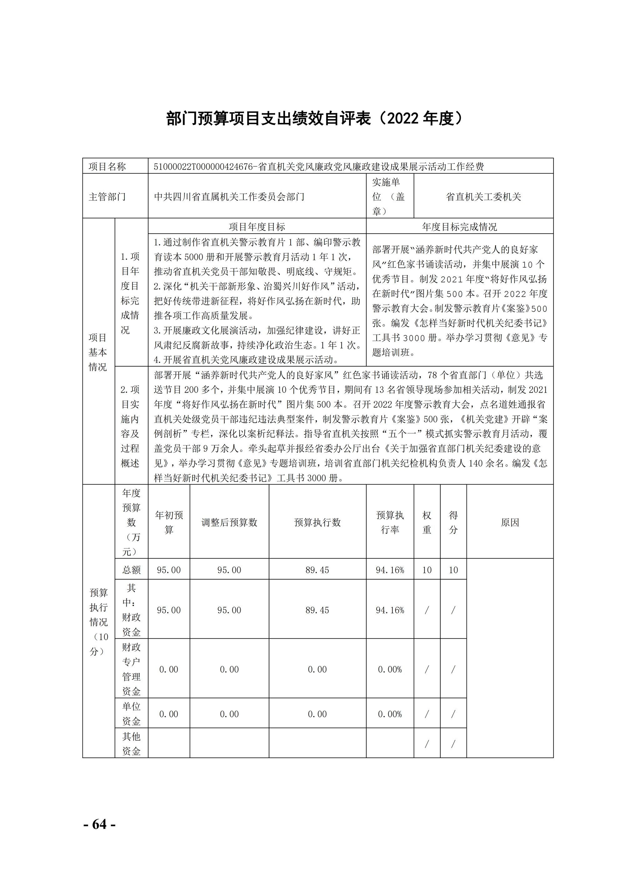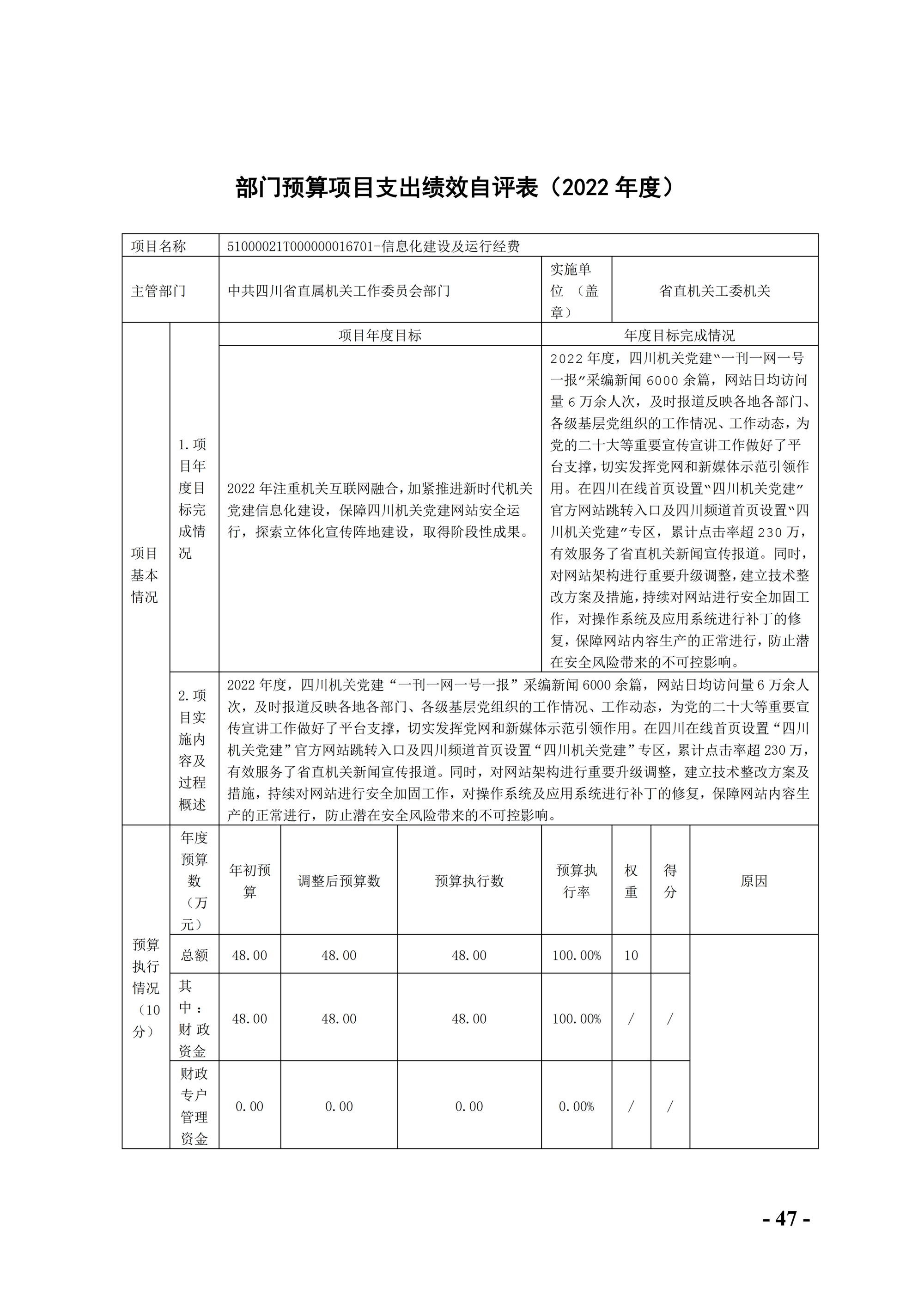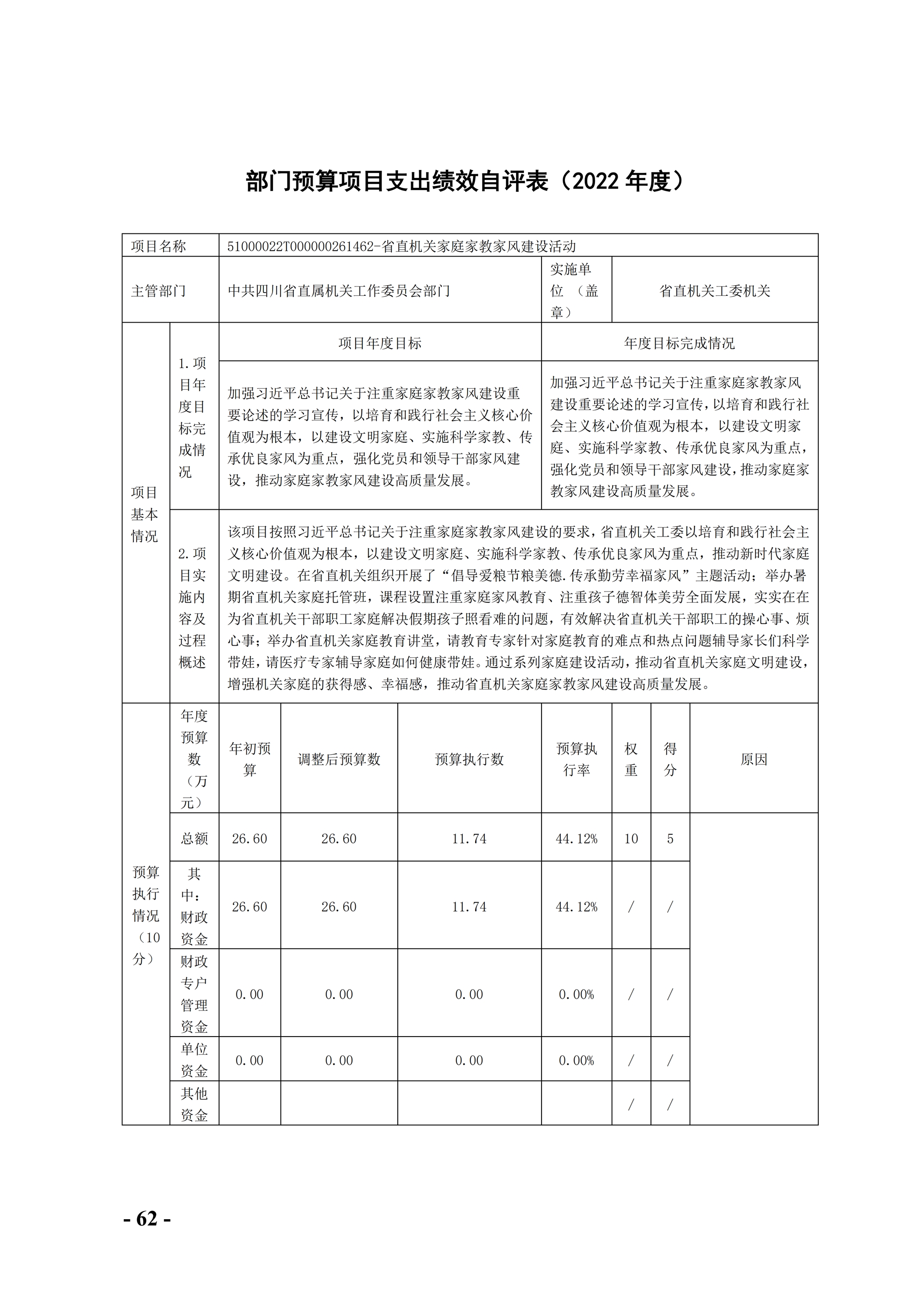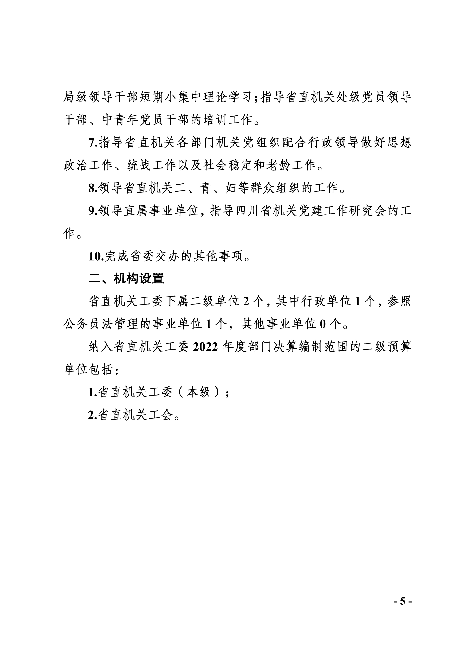 省直機關工委2022年部門決算編制說明