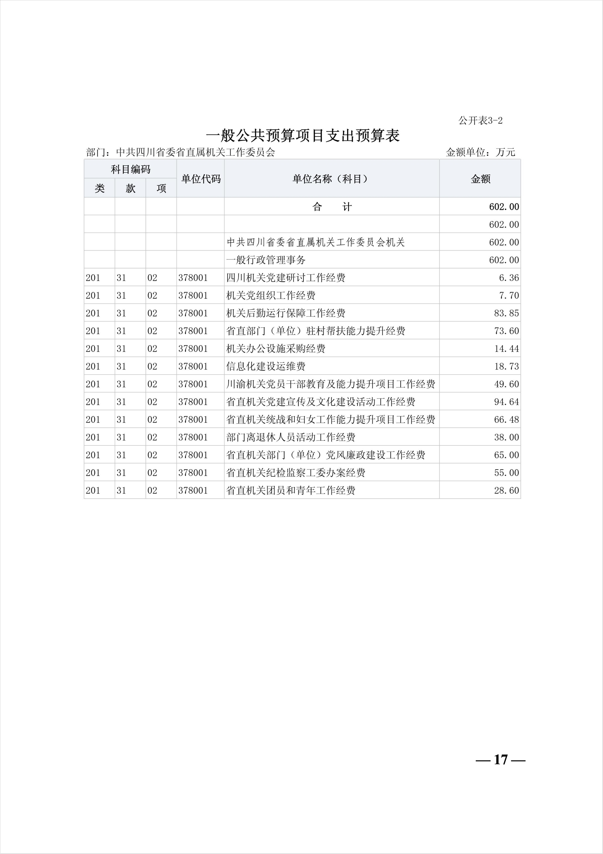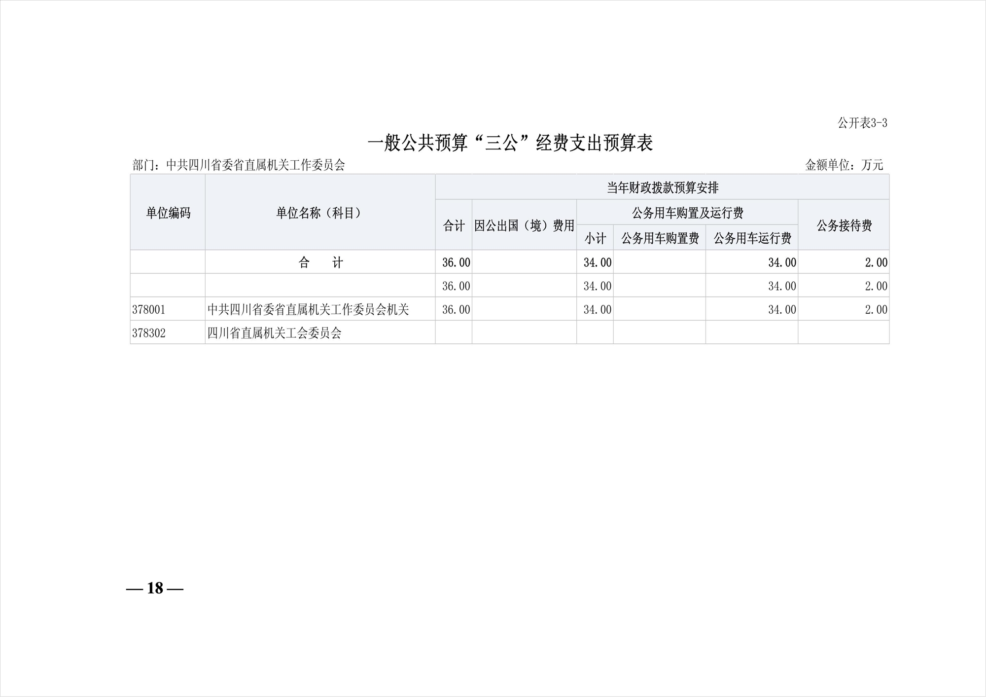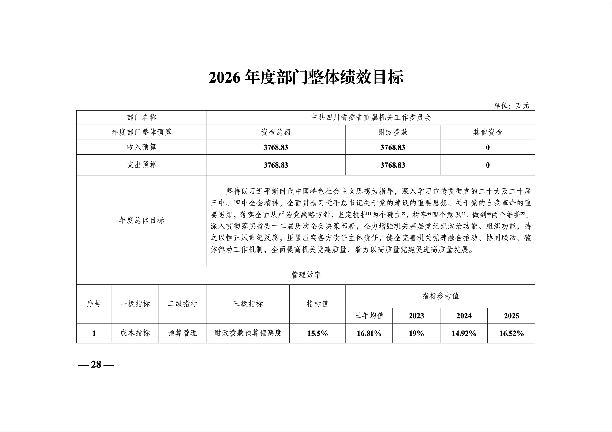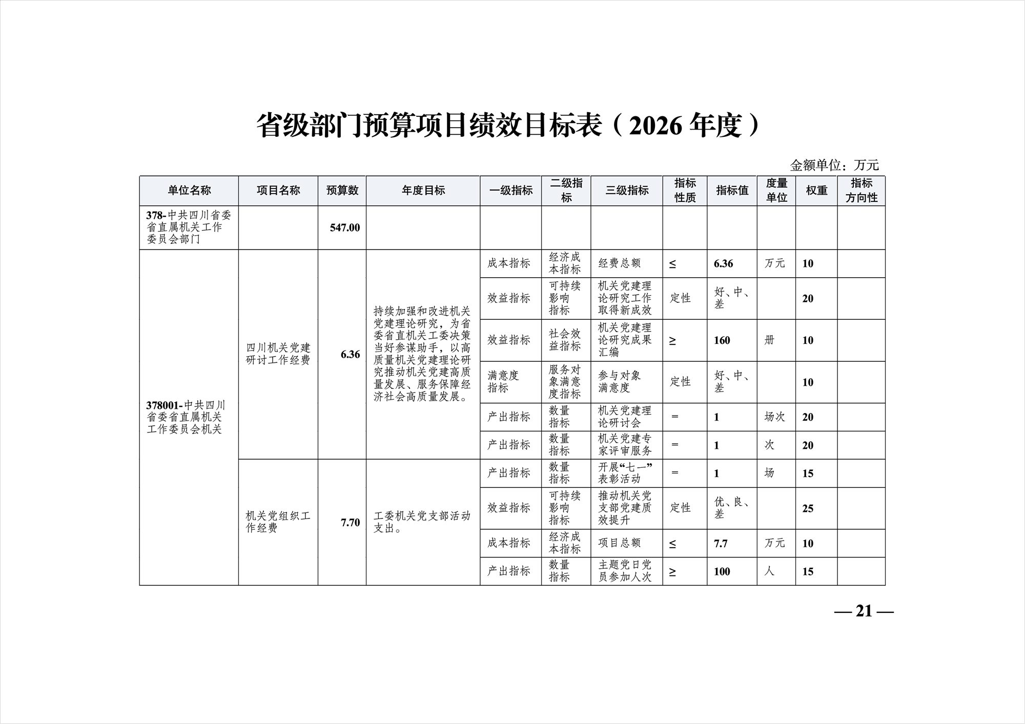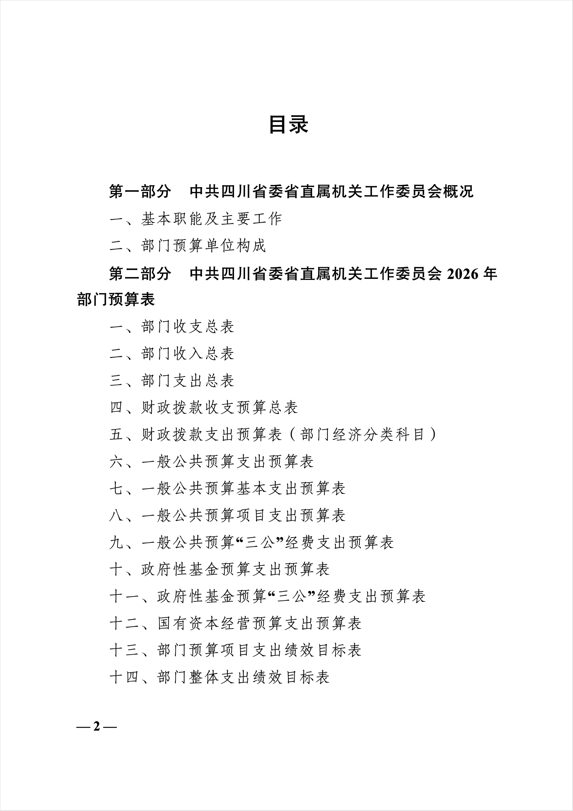 中共四川省委省直屬機關工作委員會2026年部門預算