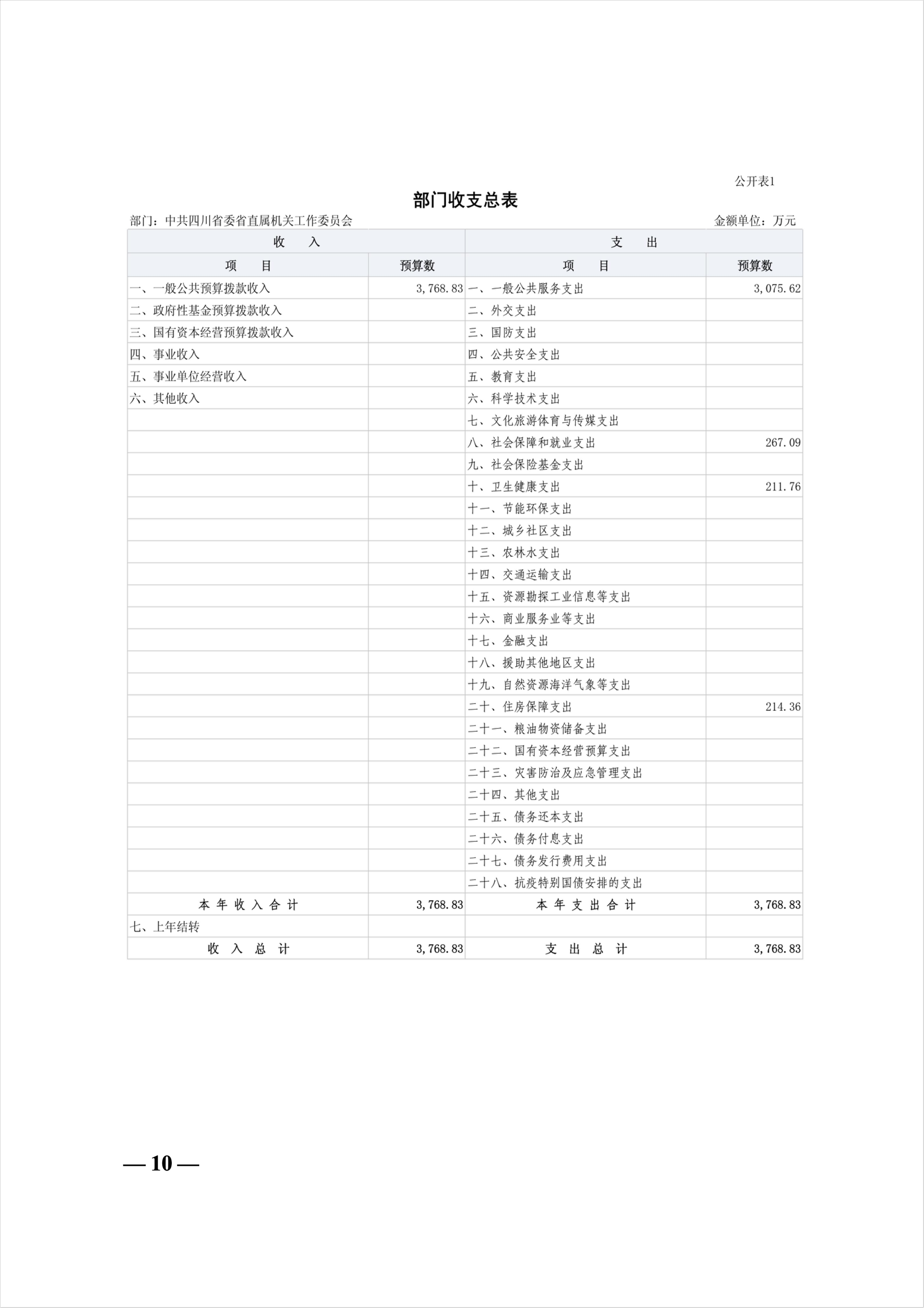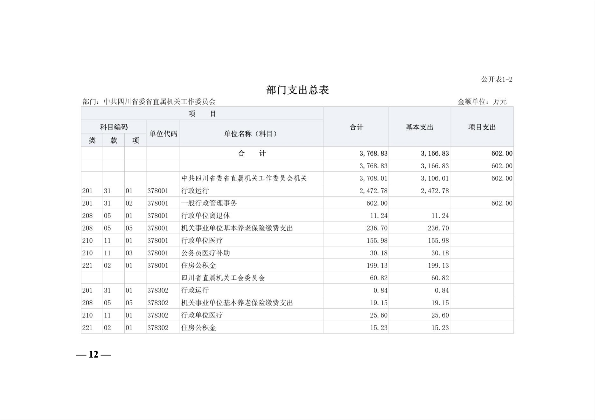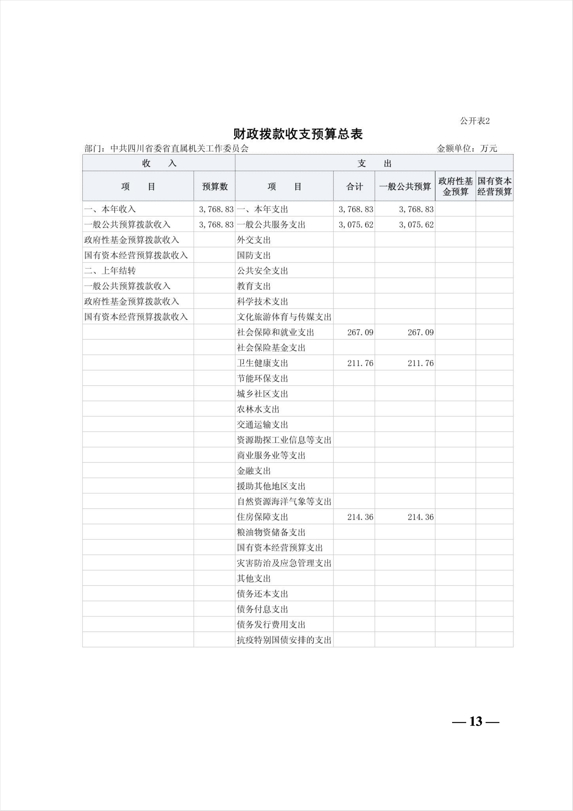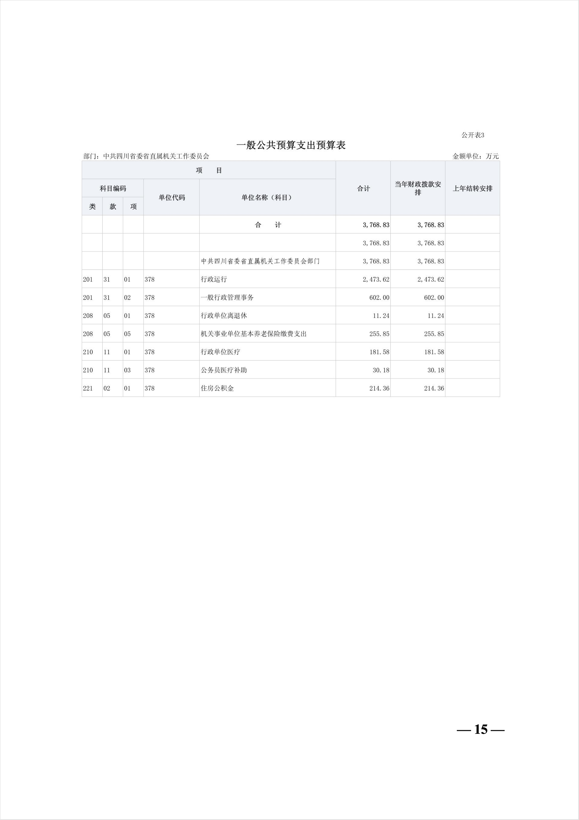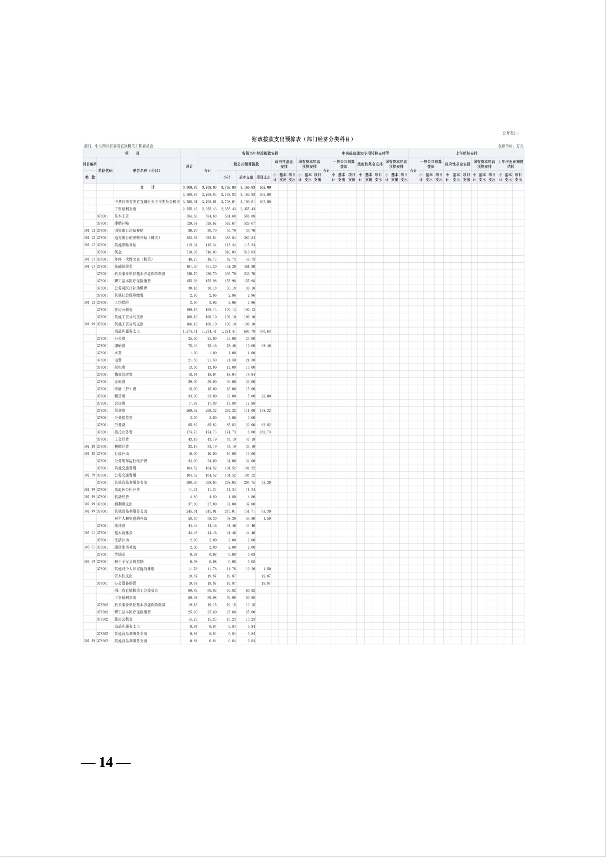 中共四川省委省直屬機關工作委員會2026年部門預算