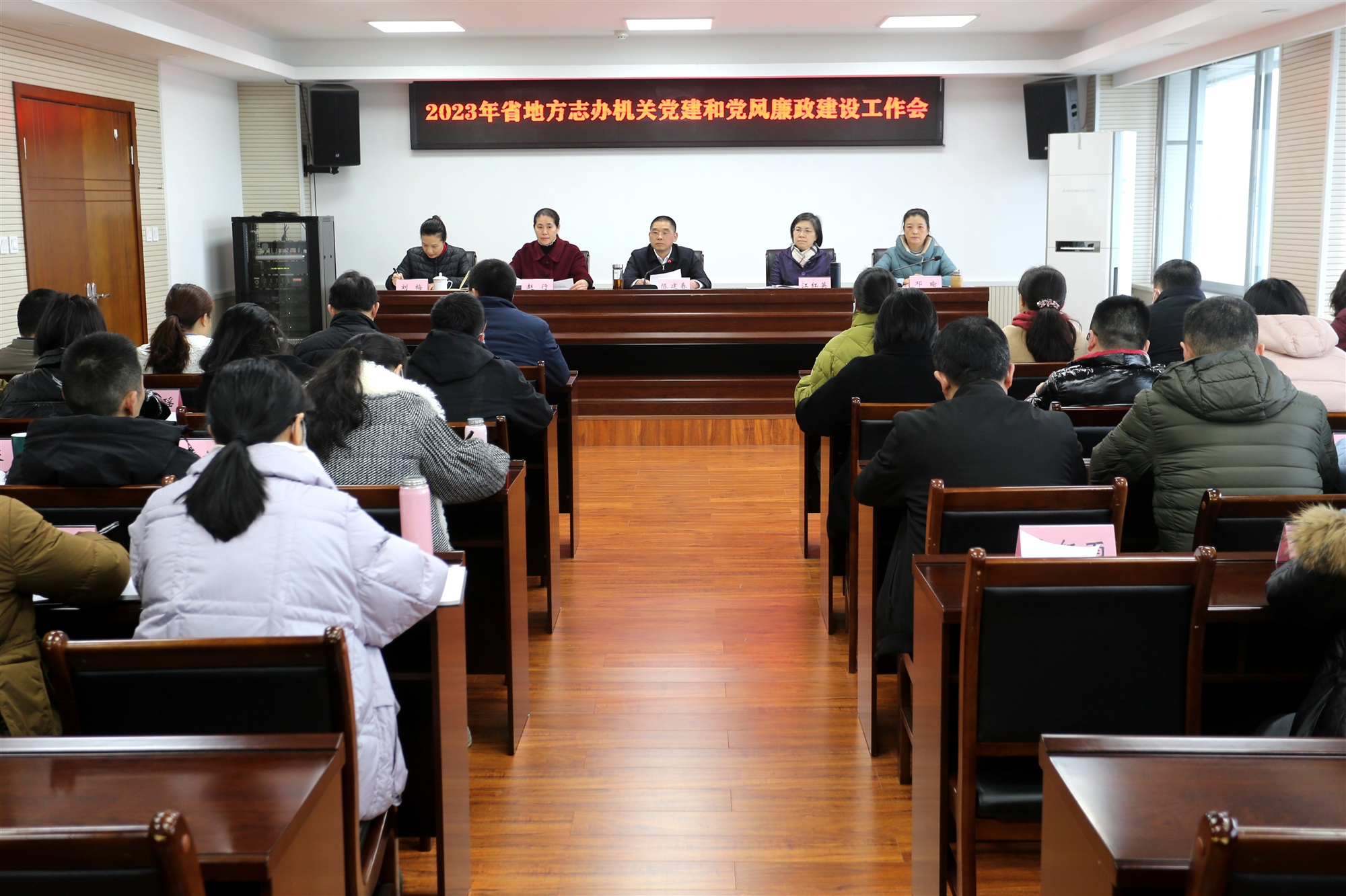 2月17日,四川省地方志辦召開2023年機關黨建和黨風廉政建設工作會議。辦黨組書記、主任陳建春出席會議并講話,省紀委監委駐省政府辦公廳紀檢監察組副組長劉梅一行蒞會指導,機關及四川年鑒社全體干部參加會議。