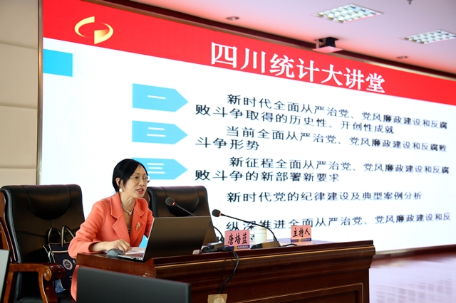 為進一步推進學習貫徹習近平新時代中國特色社會主義思想主題教育走深走實,結合省統計局2023年黨風廉政建設工作安排,5月11日,省統計局舉辦“學思想、強黨性、明紀律、守底線”黨風廉政警示教育專題講座,省直機關紀工委綜合室(預防腐敗室)主任唐培藍以“全面從嚴治黨、黨風廉政建設和反腐敗斗爭永遠在路上”為題,為省統計局機關及直屬事業單位全體黨員干部授課。