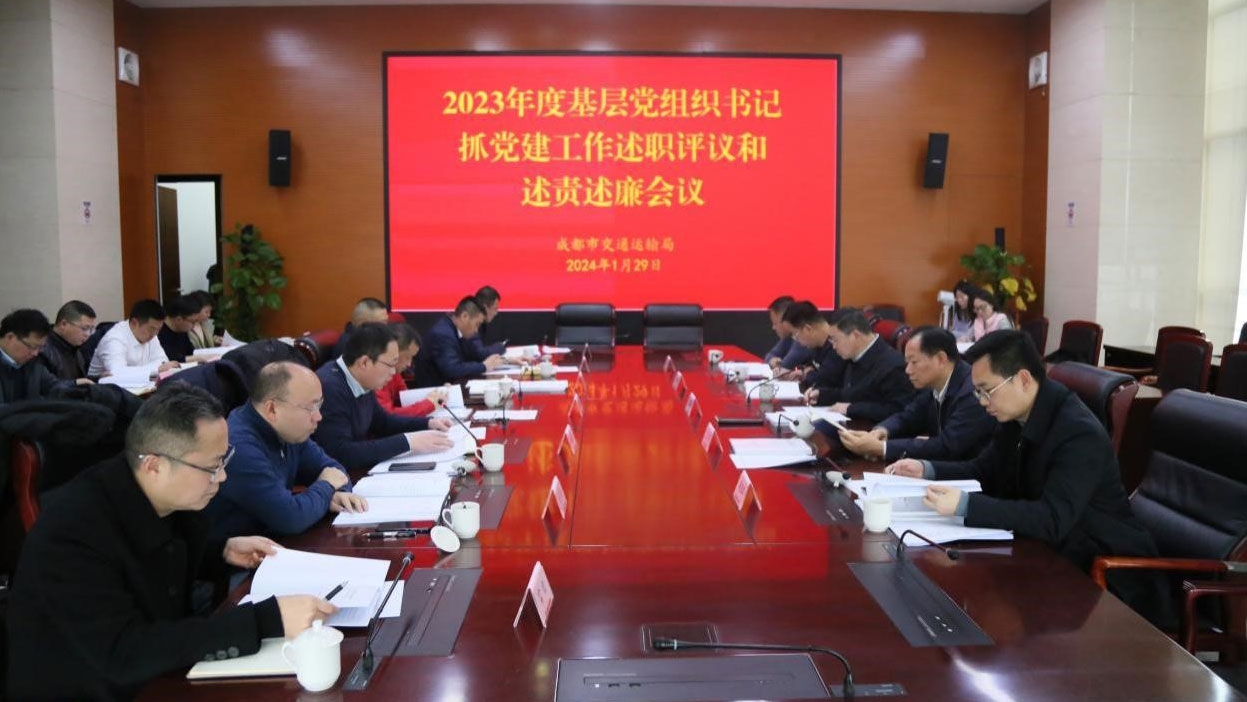 1月29日,成都市交通運輸局召開2023年度基層黨組織書記抓黨建工作述職評議和述責述廉會議,總結和評議基層黨組織黨建主體責任落實情況,安排部署下一步工作,進一步傳導壓力、壓實責任,不斷推動基層黨建工作和全面從嚴治黨向縱深發展。成都市交通運輸局黨組書記、局長王翼剛主持會議并講話。