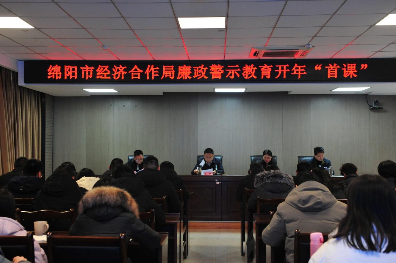 為進一步加強黨風廉政建設,深化廉政警示教育,增強黨員干部紀律規矩意識,2月23日,綿陽市經濟合作局組織召開廉政警示教育開年“首課”,通過觀看警示教育片、集中學習黨員干部違紀違法典型案例等形式為全局黨員干部上好新春“第一課”,敲響新年廉潔警鐘。局黨組書記、局長陳旭主持并講話。