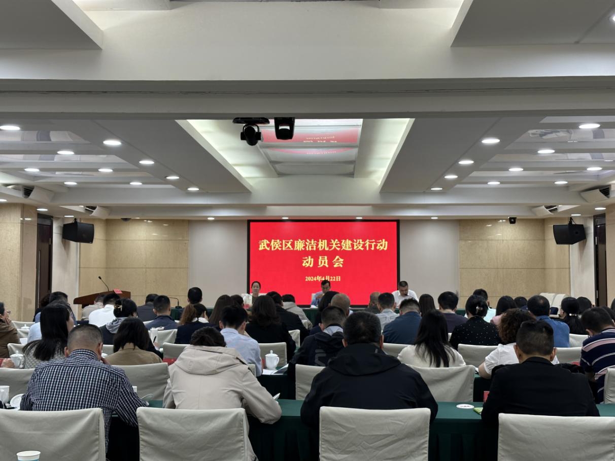 為全面貫徹黨的二十大精神,學習貫徹習近平總書記關于黨的自我革命的重要思想,學習貫徹中央和省委、市委、區委全面從嚴治黨決策部署,安排部署我區廉潔機關建設行動,推動機關黨組織和廣大黨員干部在營造政治清明、政府清廉、干部清正、社會清朗、政商親清的良好政治生態和社會環境中走在前、作表率。4月22日上午,武侯區召開廉潔機關建設行動動員會。區委常委、區委組織部部長、區直機關工委書記、武侯區廉潔機關建設行動工作專班組長黃永忠參加會議并講話,區委組織部副部長,區公務員局局長,區直機關工委常務副書記、武侯區廉潔機關建設行動工作專班副組長丁雯主持會議,各單位廉潔機關建設行動分管負責同志共56人參加會議。