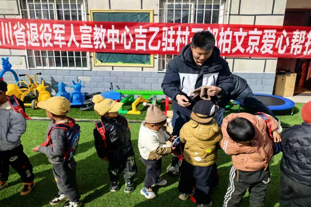 11 月的稻城寒意漸濃,省退役軍人宣傳教育中心駐村干部柏文京卻為吉乙村幼兒園的孩子們帶來了暖意 —— 他和駐村工作隊一同送來裝滿書包、圍巾、手套的紙箱,用實際行動書寫著一本溫暖的 “童” 心賬。?