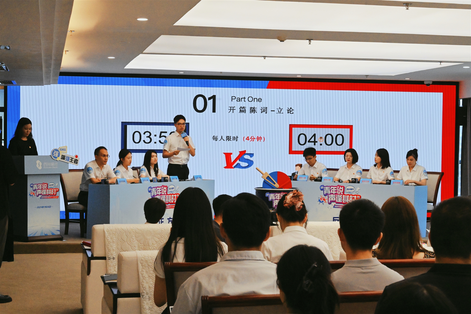 為進一步貫徹落實中央金融工作會議精神,抓好青年理論學習提升工程,近日,四川銀行“青年說·聲逢其時”青年員工辯論賽在成都舉行,四川銀行直屬黨委青年理論學習小組的4支隊伍分別圍繞“廉潔從業(yè)主要靠思想教育還是制度規(guī)范”和“銀行養(yǎng)老金融重點在個人還是機構(gòu)”兩個辯題展開了激烈辯論。