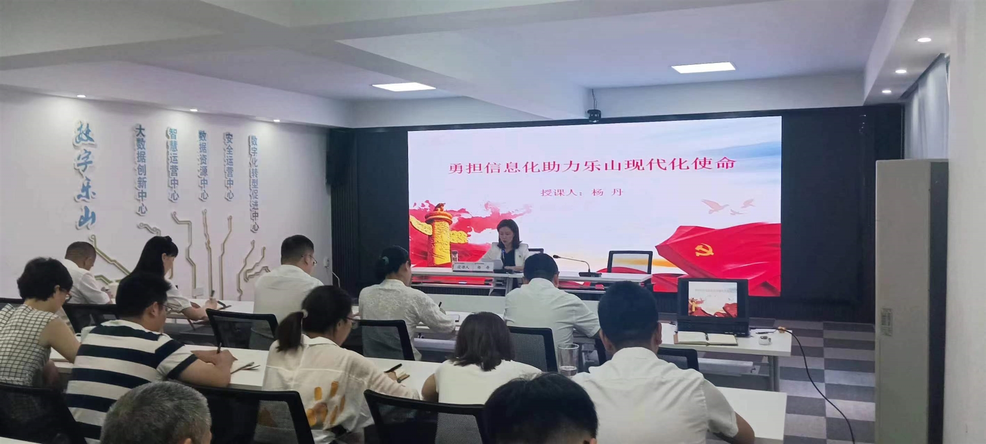 會上全體黨員干部深入學習了《中共中央關于在全黨深入開展學習貫徹習近平新時代中國特色社會主義思想主題教育的意見》和習近平總書記在學習貫徹習近平新時代中國特色社會主義思想主題教育工作會議上的重要講話精神。總支部書記楊丹同志以“勇?lián)畔⒒飞浆F(xiàn)代化使命”為題,為全體黨員干部講了一堂生動直觀的專題黨課。她從牢牢把握以信息化推進中國式現(xiàn)代化的歷史主動、牢牢把握以信息化推進中國式現(xiàn)代化的職責定位、牢牢把握以信息化推進中國式現(xiàn)代化的科學方法、牢牢把握新時代網(wǎng)絡強國建設的主要任務和以推進信息化助力樂山現(xiàn)代化五個方面對新時代、新征程路上我們?nèi)绾螕斒姑龀隽松羁讨v解。會議通報表揚了優(yōu)秀共產(chǎn)黨員和優(yōu)秀黨務工作者,全體黨員重溫了入黨誓詞。