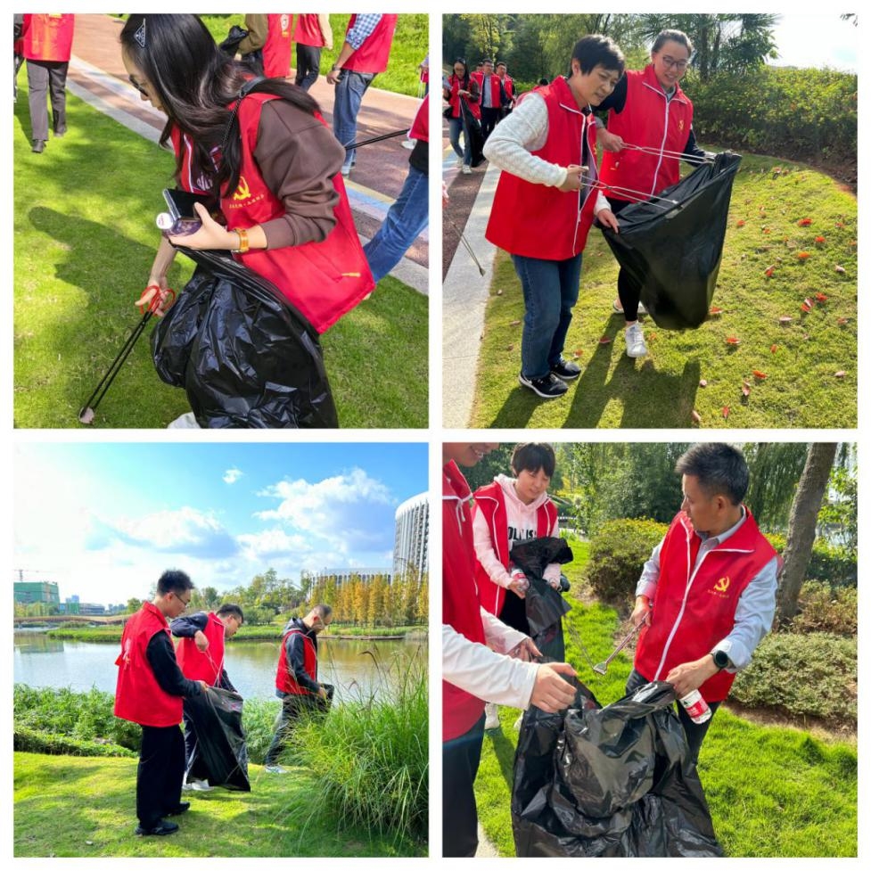 參觀結束后,黨員志愿者前往鹿溪河鹿溪智谷段開展河道巡護志愿服務活動。在河道巡護過程中,大家一邊查看水域周邊環境,巡查有無亂排亂放、非法捕撈等不文明行為;一邊拿起夾子和垃圾袋沿著河岸撿拾枯枝落葉、塑料垃圾,共同維護“水清”“岸綠”“人和”的水美景觀。