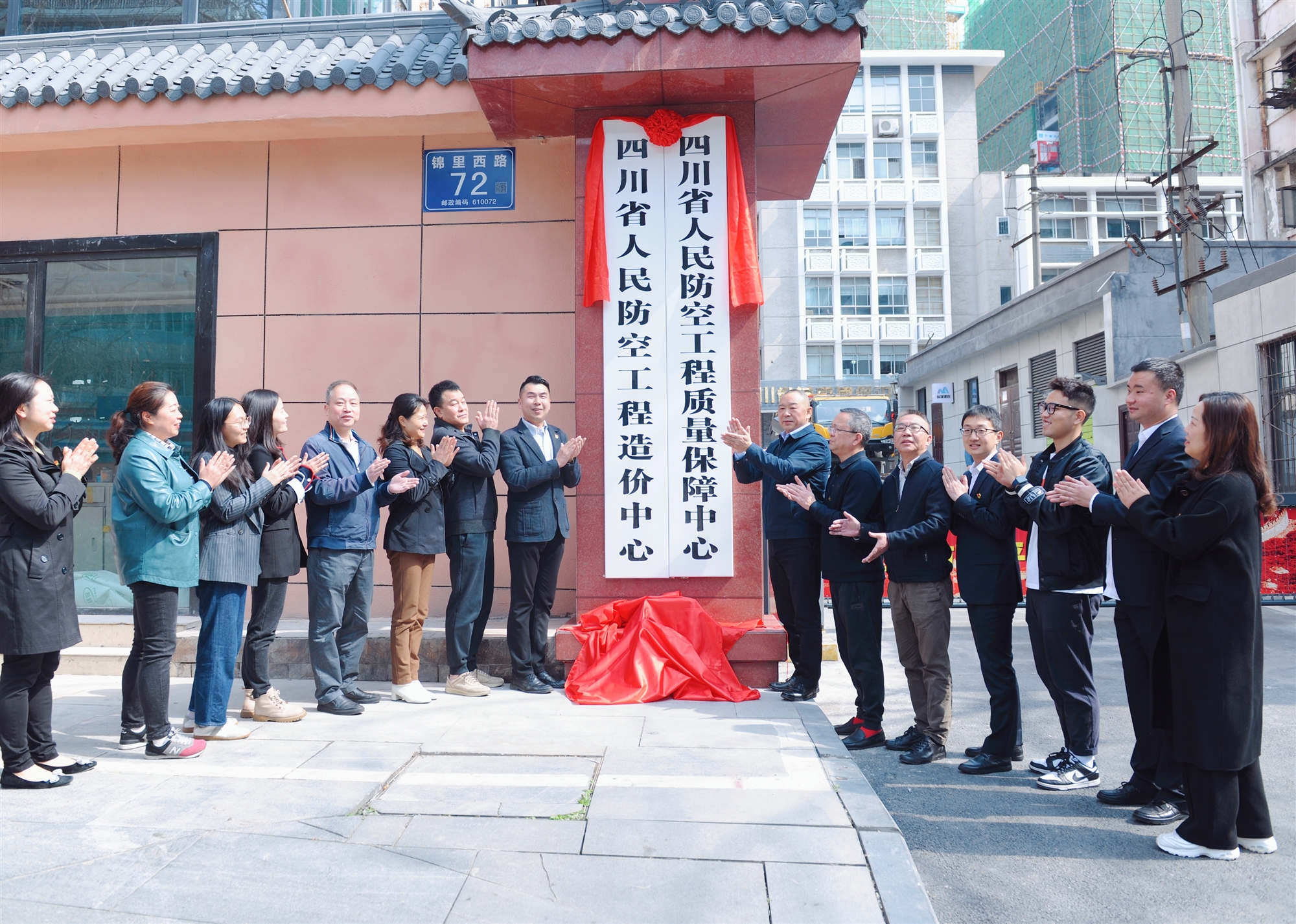 3月14日上午,省人民防空工程質量保障中心(省人民防空工程造價中心)黨支部舉行“站好新戰位、走好趕考路、當好答卷人”主題黨日活動,并為成都市錦里西路72號正式辦公地點揭牌。
