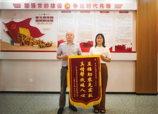 近日,內江市東興區田家鎮火花村村委將一面寫有“直播助農見實效 真情幫扶暖人心”的錦旗送到內江市東興區煙草專賣局(分公司),對局(分公司)在宣傳推廣當地特色農副產品工作中的幫助表示衷心的感謝。