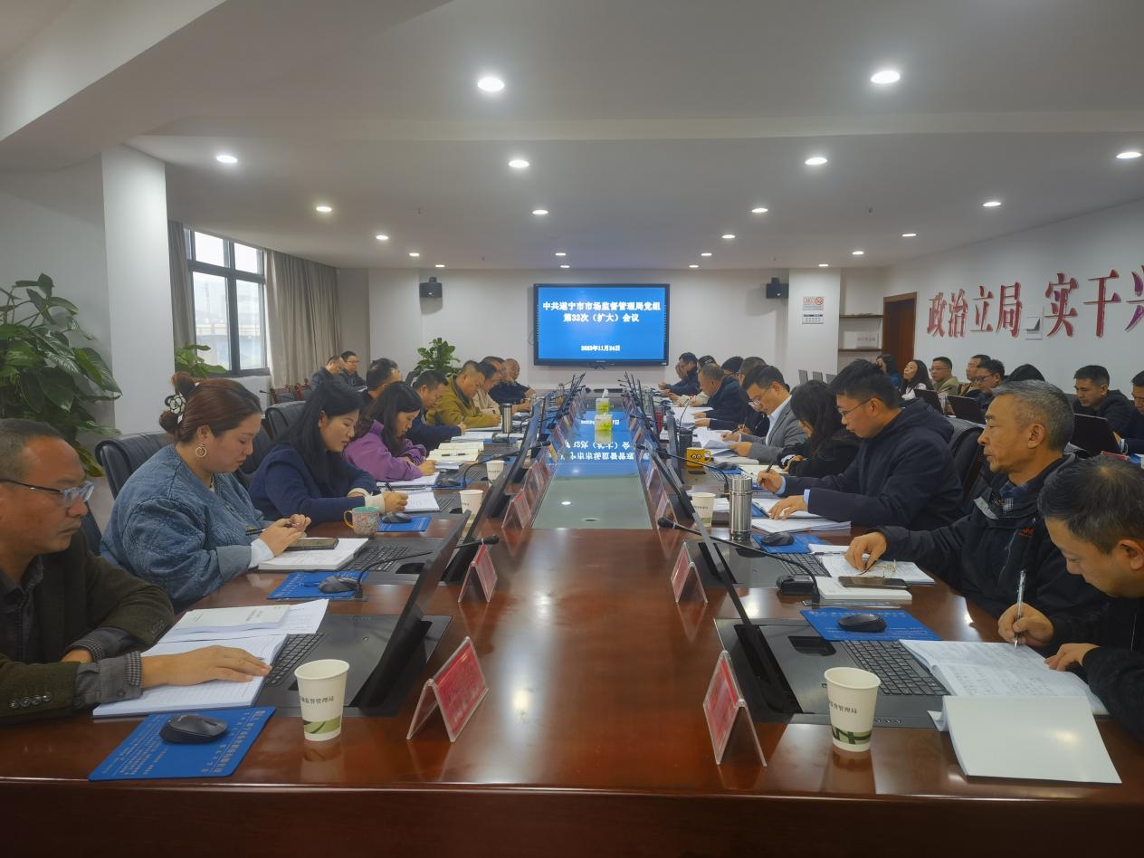 11月24日,遂寧市市場監管局召開局黨組第32次(擴大)會,傳達學習省委十二屆四次全會精神,研究我局貫徹落實意見,局領導班子成員、各科室、支隊、下屬事業單位負責人參加會議。