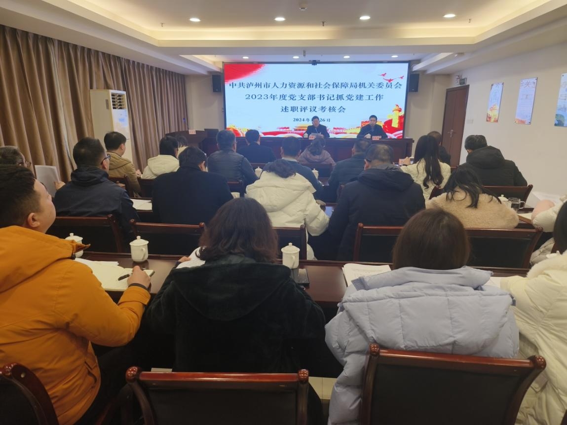 1月26日,瀘州市人社局組織召開2023年度黨支部書記抓黨建述職評議考核會,50余名黨員和群眾代表參加會議,黨組成員、機關黨委書記龍文燈主持會議,黨組書記、局長張國華出席會議并作總結發言。