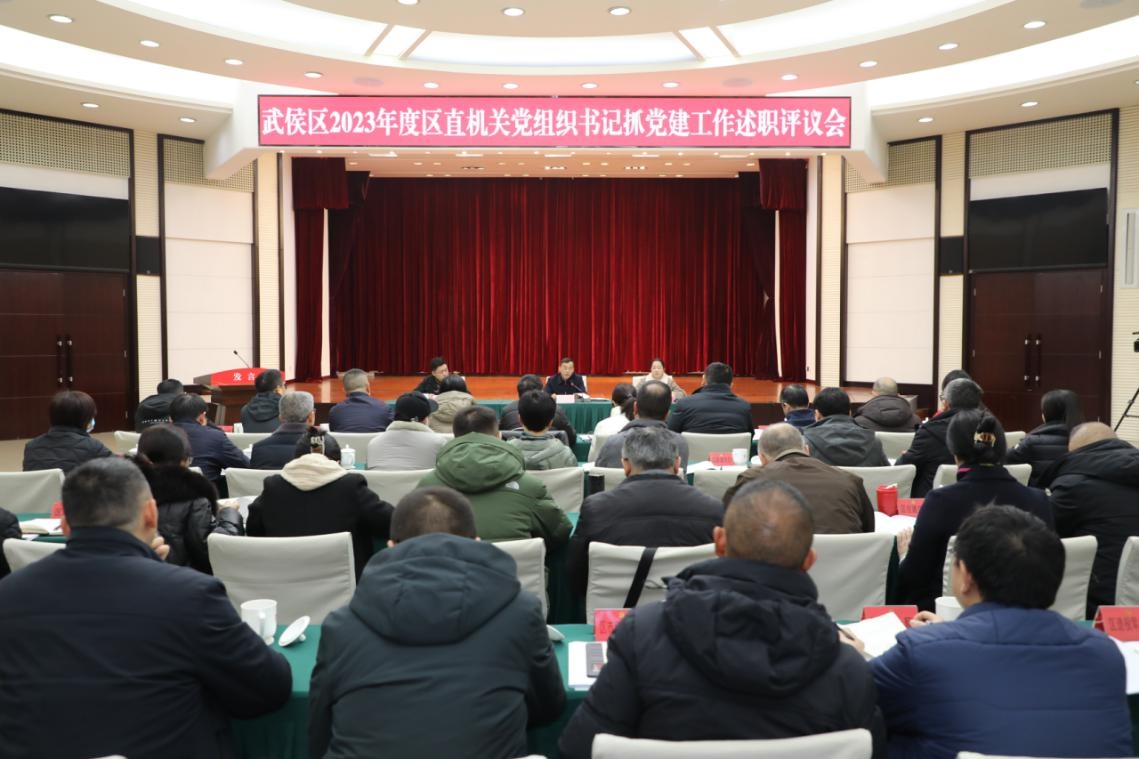 為深入學習習近平總書記對黨的建設和組織工作作出的重要指示精神,貫徹落實全國全省組織工作會議精神,全面提高機關黨建質量,1月30日,成都市武侯區召開2023年度區直機關黨組織書記抓黨建工作述職評議會議。區委常委、組織部部長、區直機關工委書記黃永忠出席會議并講話。區直機關各黨組織書記、部分區直機關單位黨員代表,共計55人參加會議。