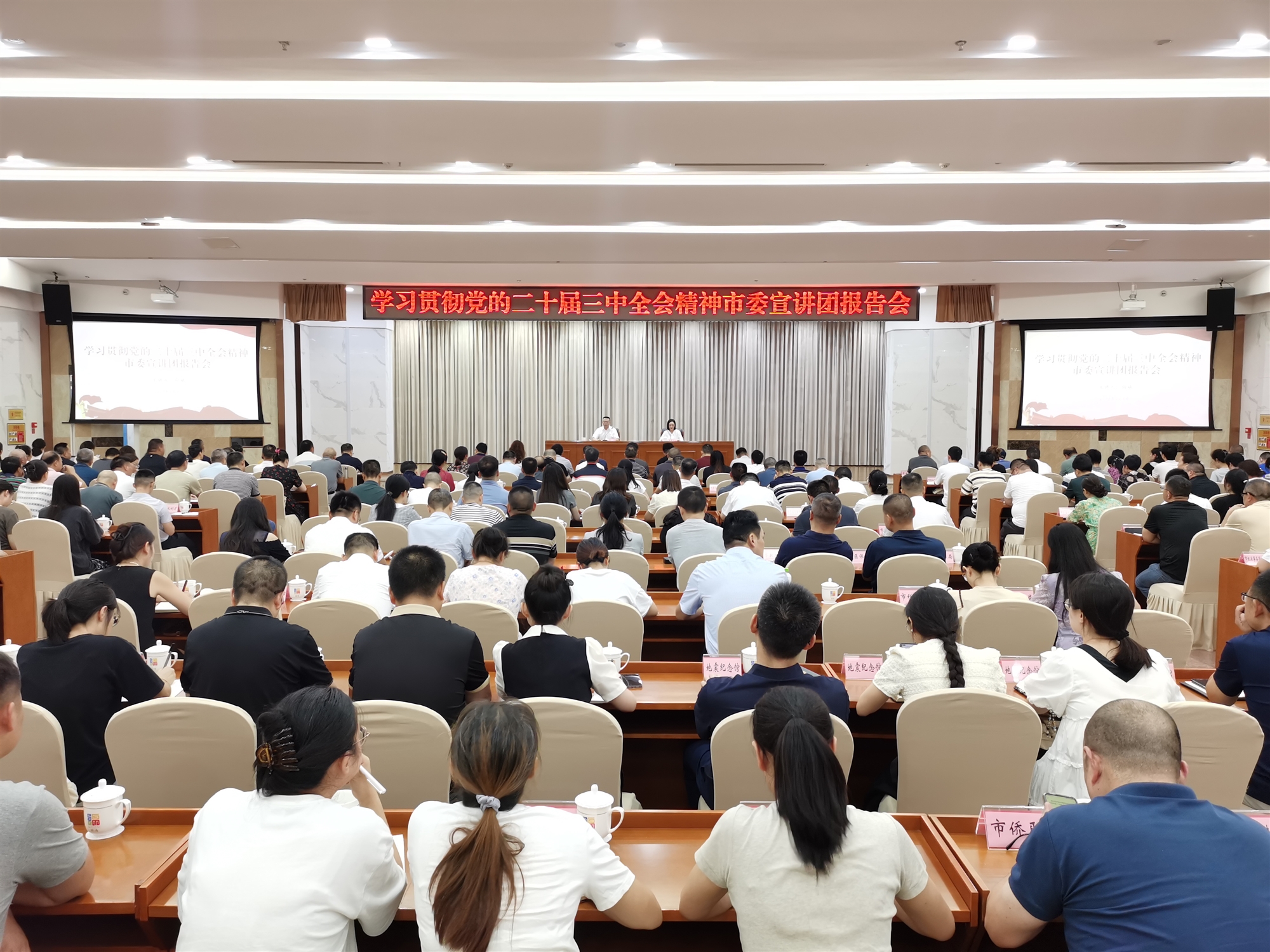 9月4日,學習貫徹黨的二十屆三中全會精神綿陽市委宣講團報告會在綿陽長虹技術中心舉辦,綿陽市委宣講團(市直機關宣講分團)負責人、市委市直機關工委常務副書記向斌作宣講報告。綿陽市直機關黨組織書記、專職副書記、機關紀委書記、黨辦主任、黨員代表共計290余人參加報告會。綿陽市委市直機關工委副書記熊薇主持報告會。