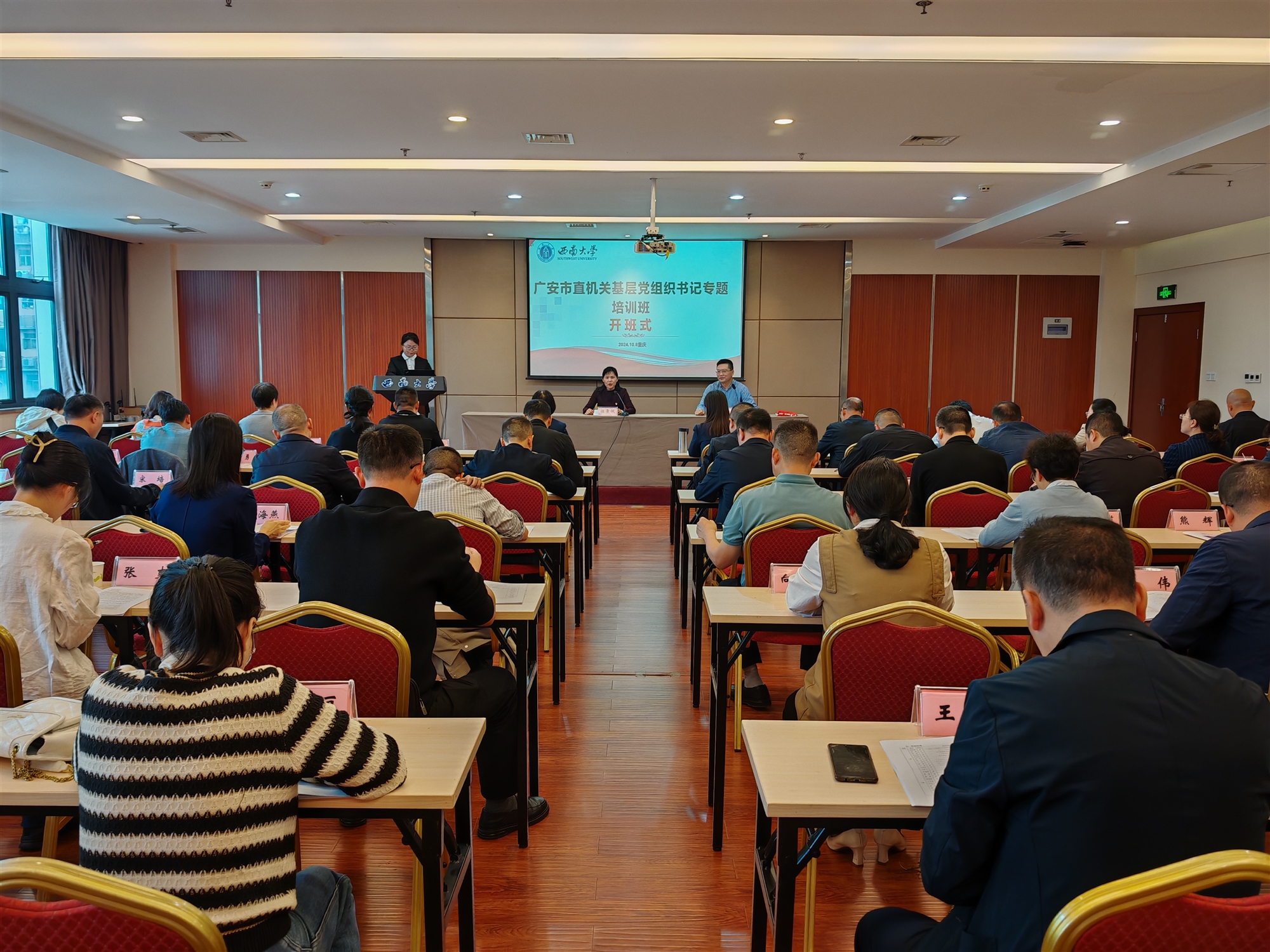 10月8日,2024年廣安市直機(jī)關(guān)基層黨組織書記專題培訓(xùn)班在西南大學(xué)開(kāi)班,重慶渝北、合川直屬機(jī)關(guān)工委分管負(fù)責(zé)人出席開(kāi)班式,廣安市委市直機(jī)關(guān)工委常務(wù)副書記任景佩作開(kāi)班動(dòng)員。