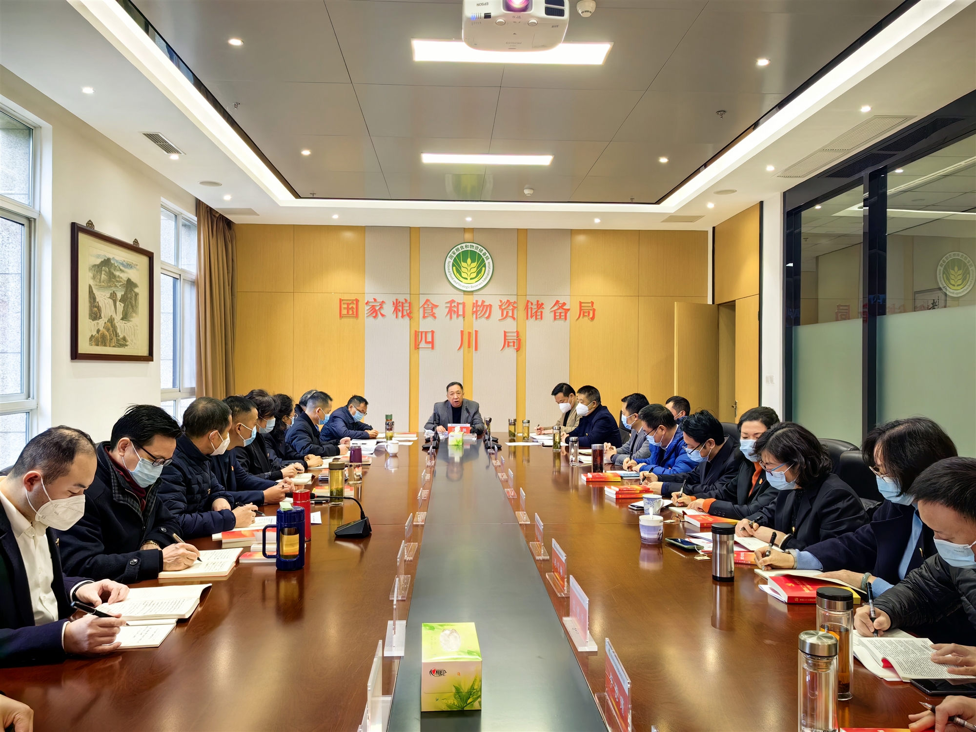 會議要求,結合四川局當前和今后一段時期工作,堅持以上率下,同向發力。一要深化黨的政治建設,堅決做到“兩個維護”,捍衛“兩個確立”,全力推動黨中央決策部署、國家局黨組和四川省委省政府工作要求落地見效。二要積極推動改革發展,探索多元主體,加強儲備協同,優化規模結構,努力完善儲備體系。三要牢記“國之大者”,統籌發展和安全,強化戰略保障、宏觀調控和應對急需功能,不斷增強防風險保安全守底線的能力,切實扛穩為國管糧管儲政治責任,維護國家儲備安全。四要堅決守牢“三條底線”,自覺筑牢拒腐防變能力,做到講政治、守規矩、敢擔當、有作為,不給國家局黨組抹黑添亂。五要加強人才隊伍建設,多措并舉培養,持續壯大人才資源,激活轉型發展動能。六要建立完善防火墻機制,防范國儲企業經營風險,落實《國家局關于加強所屬事業單位出資企業監督管理意見》,建立風險傳導的防火墻。七要“以案促治”長效發力,聚焦關鍵少數,加強經常性紀律教育和警示教育,堅持不懈糾“四風”樹新風,維護良好的政治生態。各級黨組織和全體黨干部,要發揚“釘釘子精神”,錨定目標、勇毅前行,以奮發有為的精神狀態和不達目標不罷休的進取意識推進糧儲事業高質量發展。