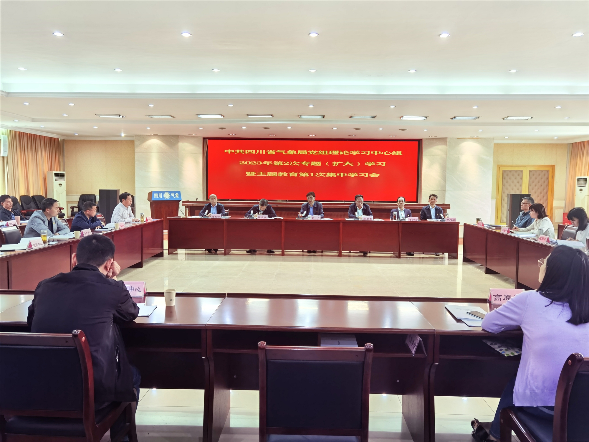 5月11日,省氣象局召開黨組理論學習中心組2023年第2次專題(擴大)學習暨主題教育第1次專題集中學習會。會議由黨組書記彭廣主持,黨組理論學習中心組成員參加學習研討,各內設機構和直屬單位主要負責人、黨組巡察辦主任、省氣象學會秘書處秘書長等列席會議。