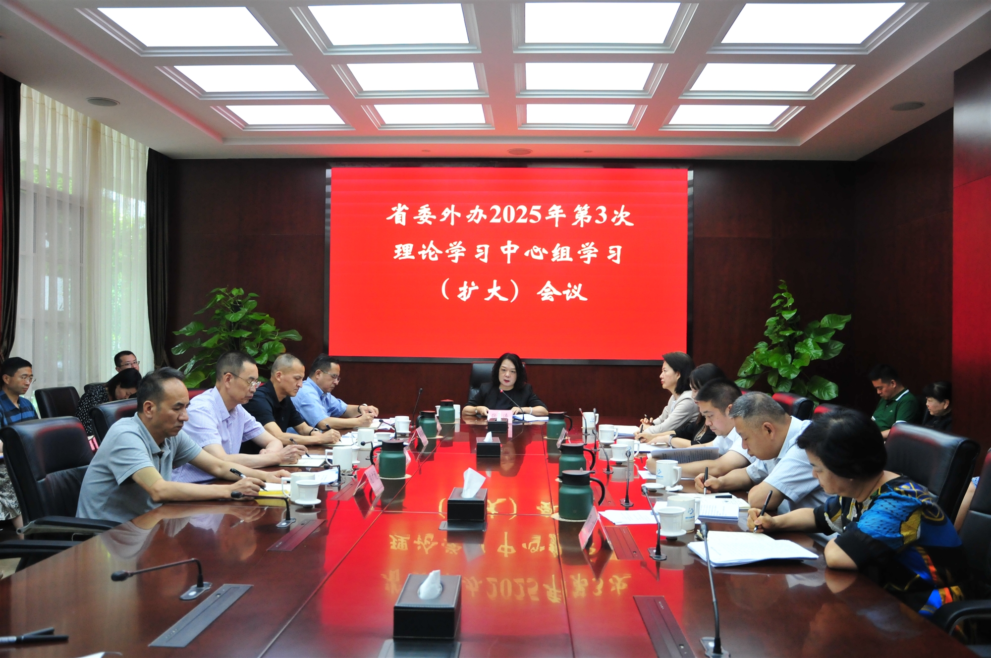6月26日,省委外辦召開2025年第3次理論學習中心組學習(擴大)會議,圍繞“深入貫徹中央八項規定精神,馳而不息加強作風建設”主題,進行集中學習研討。省委外辦主任張濤主持會議并講話。