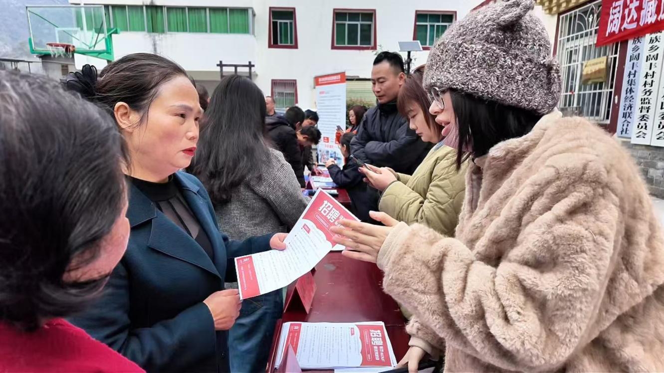 當天,一場新春助農專場招聘會在闊達藏族鄉火熱舉行。此次活動是省工商聯依托“萬企興萬村”行動平臺,積極動員會員企業履行社會責任的具體舉措。在省工商聯的精準對接下,西科餐飲管理集團有限公司、四川快住集成房屋有限公司兩家企業攜60個優質就業崗位來到現場,涵蓋餐飲服務、技術工、銷售等多個類別,為當地有就業意愿的群眾搭建了便捷高效的對接平臺。調研組深入活動現場,與求職群眾親切交流,詢問就業意向與實際困難,鼓勵大家一起為夢想奮斗、為幸福打拼。
