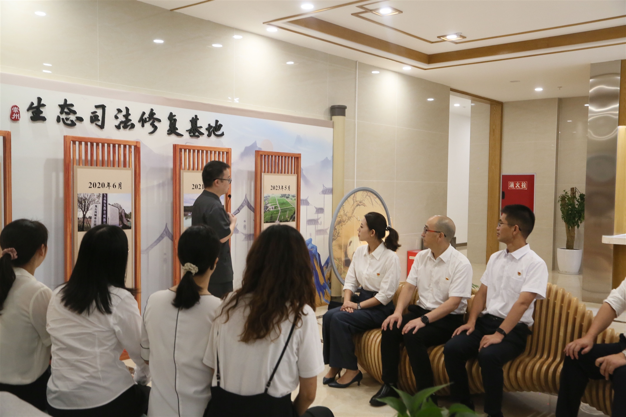 在街子旅游環(huán)保法庭,省法院政治部黨支部同志參觀了訴訟服務大廳、調(diào)解工作室、刑事民事審判法庭、司法修復基地展示區(qū)及黨建活動室等特色區(qū)域,認真了解街子法庭在打造環(huán)資審判特色品牌、服務基層治理、助力天府糧倉建設等方面的工作舉措和成效,崇州法院“崇法惟民 博學慎斷”的院訓和機關(guān)黨建、文化建設的經(jīng)驗做法,為省法院政治部黨支部黨建工作的開展打開了新視野、新思路。