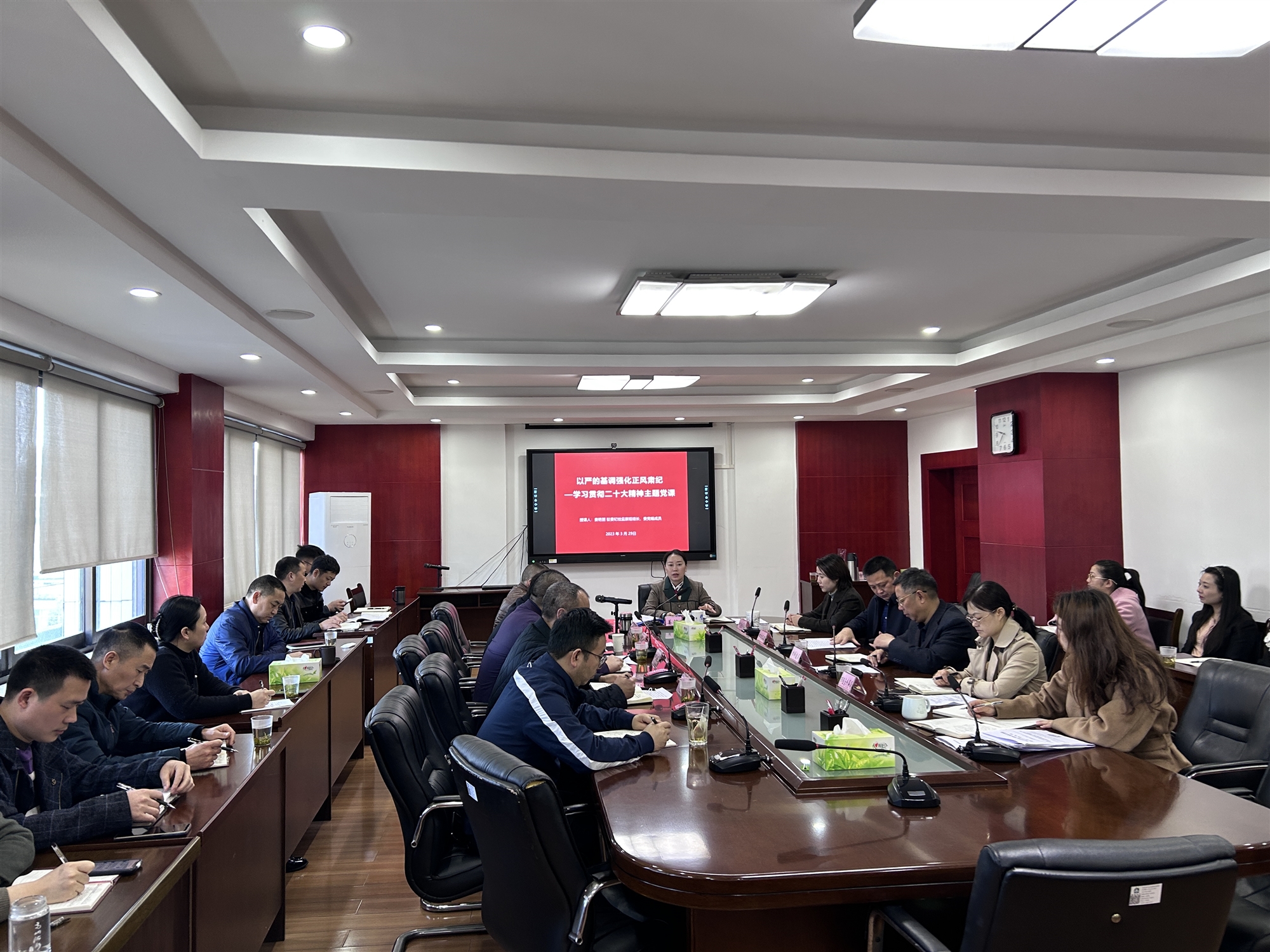 黨課由黨組成員、駐委紀檢監察組組長姜艷麗主講,聚焦“學習貫徹黨的二十大精神”主題,以新征程蘊含著人民群眾對黨風政風的新期盼新要求;鍥而不舍落實中央八項規定及其實施細則精神,深化整治形式主義、官僚主義頑瘴痼疾;完善制度規范,健全作風建設長效機制,堅決反對特權思想和特權行為三個方面,結合近年來發生的典型案例,現場進行案例剖析、分析違紀違法原因、提出預防措施建議。