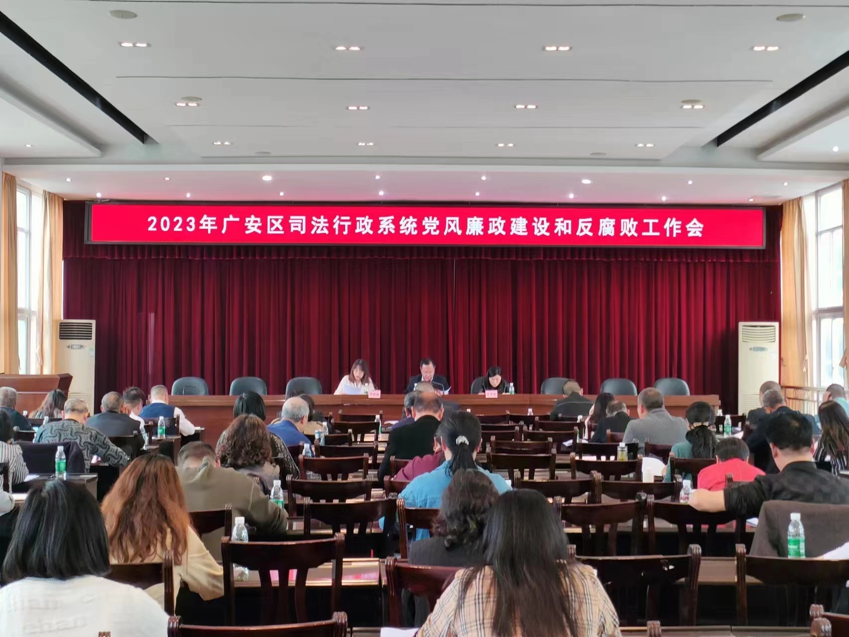 4月13日,廣安市廣安區司法局召開2023年全區司法行政系統黨風廉政建設和反腐敗工作會議。局班子成員,南充監獄選派監獄民警,各股、室、處、所、中心負責人,全體社區矯正工作者,區人民調解委員會及區專職人民調解員,市金城公證處、轄區各律師事務所、基層法律服務所負責人參加會議。