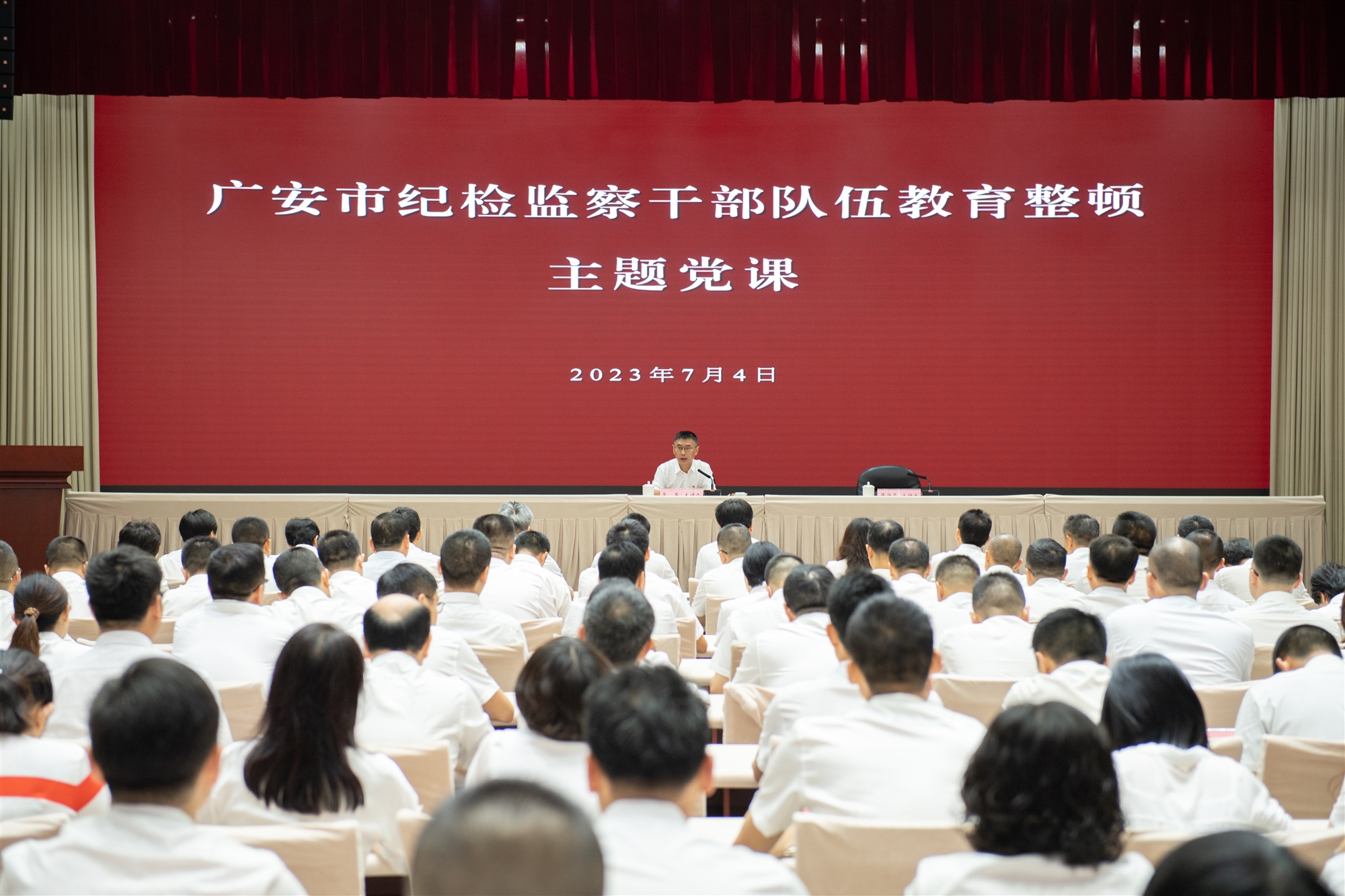 7月4日上午,廣安市紀(jì)檢監(jiān)察干部隊(duì)伍教育整頓主題黨課舉行。廣安市委常委、市紀(jì)委書記、市監(jiān)委主任聶軍以“賡續(xù)紅色血脈,傳承優(yōu)良作風(fēng),做讓黨放心、人民信賴的忠誠(chéng)衛(wèi)士”為主題作黨課報(bào)告。