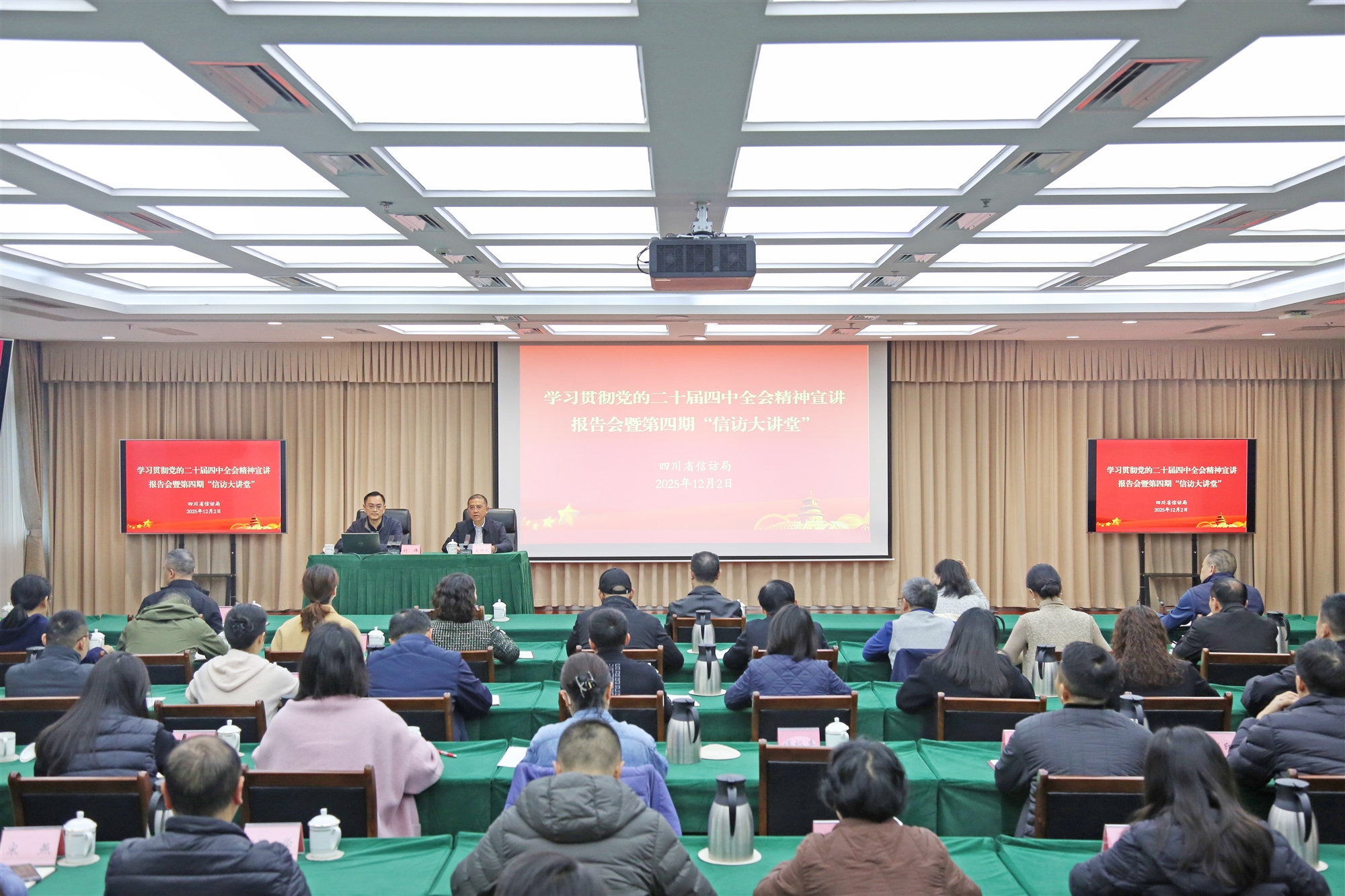 12月2日,省信訪局舉辦學習貫徹黨的二十屆四中全會精神宣講報告會暨第四期“信訪大講堂”。省委宣講團成員、省委省直機關黨校副校長、教授劉偉作宣講報告。在家局領導和省信訪局全體干部職工、實踐鍛煉干部參加。報告會以視頻形式宣講到市級信訪部門。