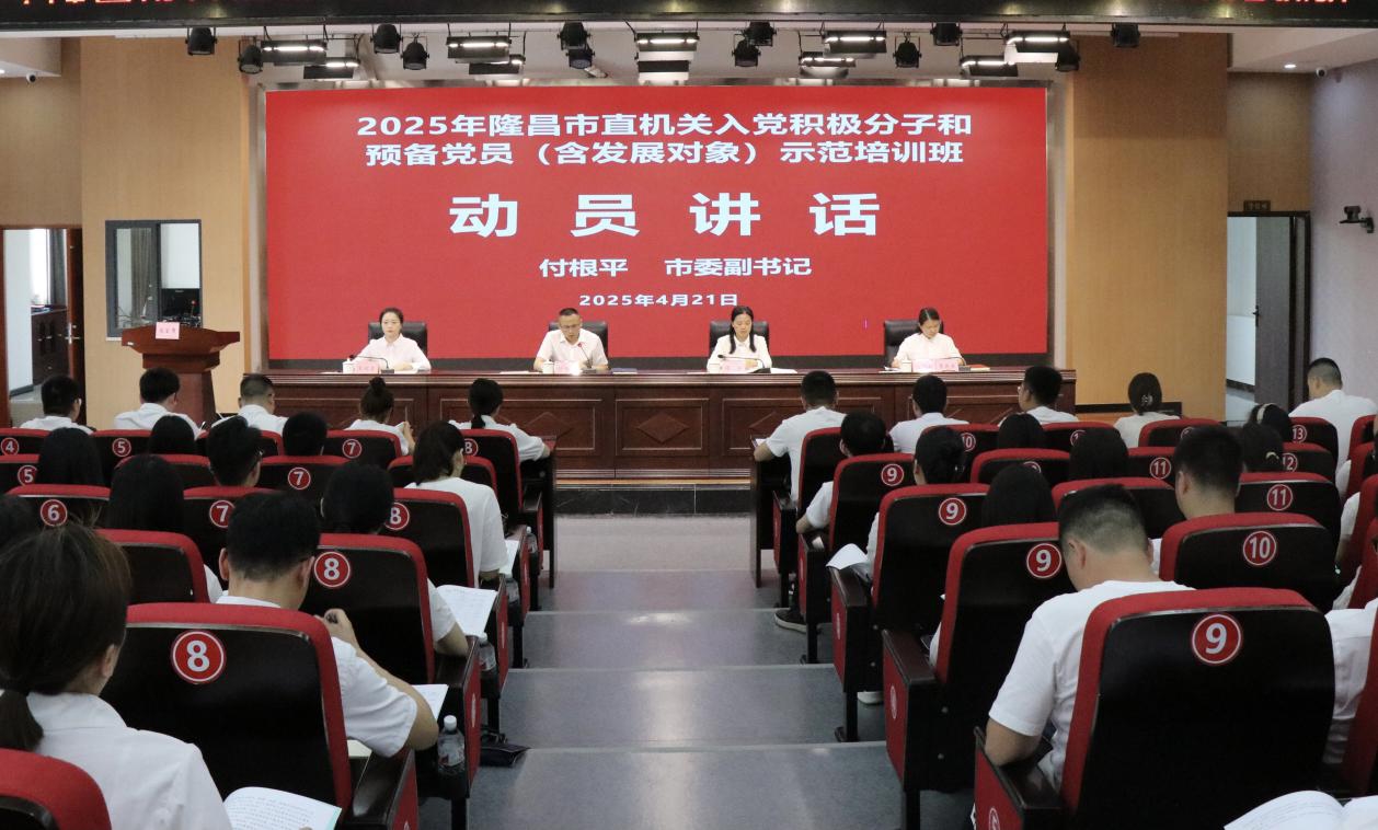 為強化入黨積極分子、預備黨員(含發展對象)政治素養和黨性修養,鍛造忠誠可靠干部隊伍,4月21日,2025年隆昌市直機關入黨積極分子和預備黨員(含發展對象)示范培訓班在市委黨校正式開班,市委副書記付根平出席開班典禮并作動員講話。