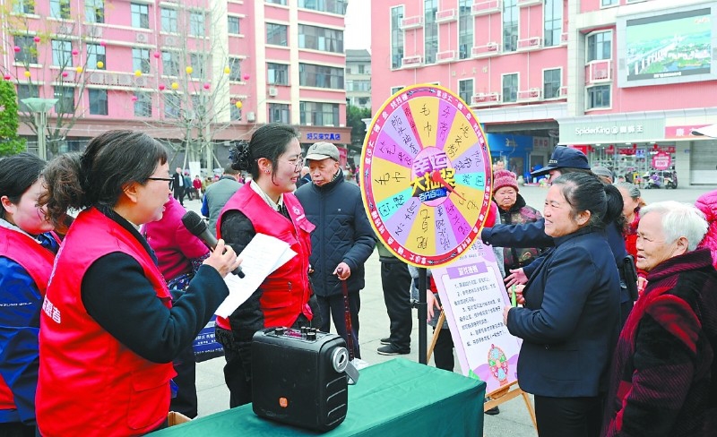 咨詢區里,各單位業務骨干坐鎮“一站式”服務臺,圍繞《婦女權益保障法》《反家庭暴力法》,耐心解答婚姻家庭糾紛、財產分割、防拐賣等熱點問題,發放普法資料、解讀法律條文,推動法治知識入腦入心。趣味園區成為熱門打卡地,“維權知識大轉盤”“圈住幸福”兩大互動游戲吸引眾多群眾參與,大家通過答題、朗讀法律條文贏取禮品,在輕松氛圍中學習維權知識、提升自我保護意識。義診區域內,縣婦幼保健計劃生育服務中心專家團隊提供免費血壓、血糖檢測及婦科咨詢,重點宣傳“兩癌”防治政策與免費篩查流程,為備孕、孕期婦女提供優生優育指導,把健康關愛落到實處。