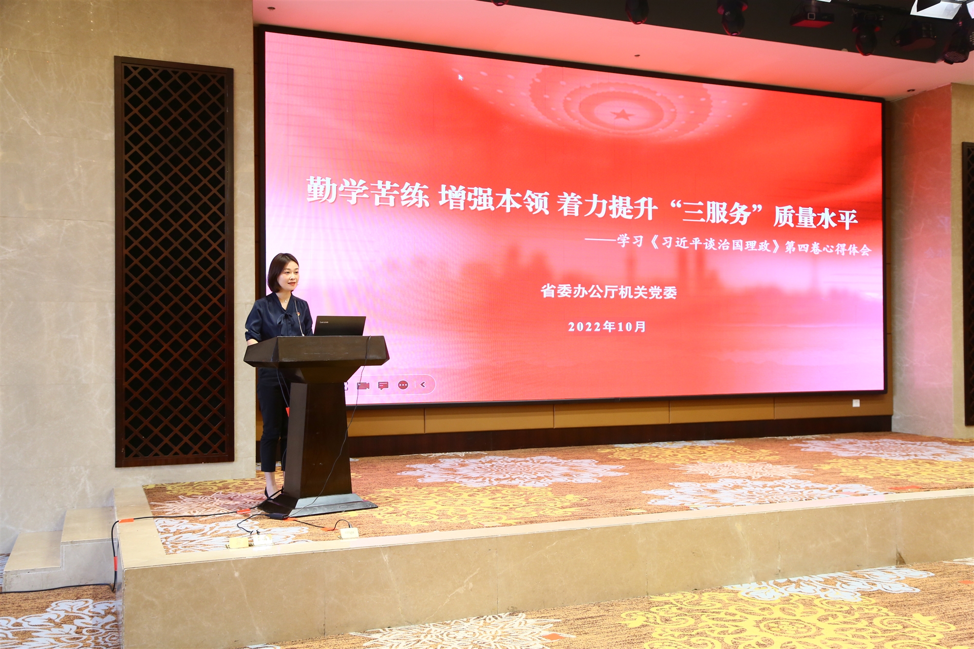 省委辦公廳肩負著服務省委總攬全局、協調各方的重要職責,常常大事要事交織、急事難事疊加。作為省委辦公廳的年輕干部,我們從《習近平談治國理政》第四卷中尋找解決問題的鑰匙,找準服務省委的切入點、著力點。堅持勇于擔當,在抗震救災、疫情防控等急難險重任務面前敢于上前一步、挺身而出,雷厲風行、緊抓快辦,爭分奪秒、不等不靠,做到“不待揚鞭自奮蹄”;堅持極端負責,把自己當作最后一道關口,承擔的工作使出最大力氣、出手的事情拿出最高水平,字斟句酌、毫厘不爽,做到“吟安一個字、捻斷數莖須”;堅持奉獻精神,不計名利、一心為公,把帶頭奉獻、無私奉獻、愛崗敬業的要求體現到辦文、辦會、辦事各項工作中,當好服務省委的螺絲釘、老黃牛,做到“衣帶漸寬終不悔”。