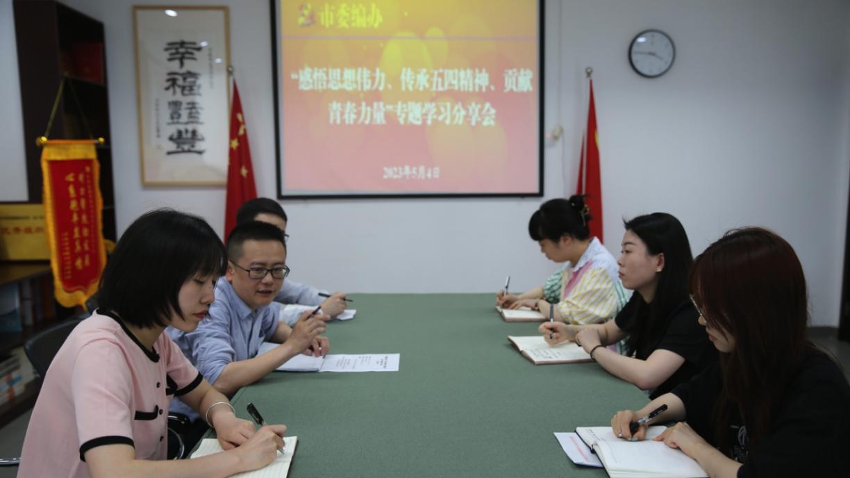 5月4日,在第74個五四青年節到來之際,成都市委編辦青年理論學習小組組織開展“感悟思想偉力、傳承五四精神、貢獻青春力量”專題學習分享會,傳達學習習近平總書記給中國農業大學科技小院學生重要回信精神,觀看時政微視頻《青年朋友的知心人》,圍繞“傳承五四精神,做有理想、敢擔當、能吃苦、肯奮斗的新時代機構編制干部”開展分享交流,進一步推動主題教育走深走實。市委編辦青年理論學習小組成員代表參加會議。