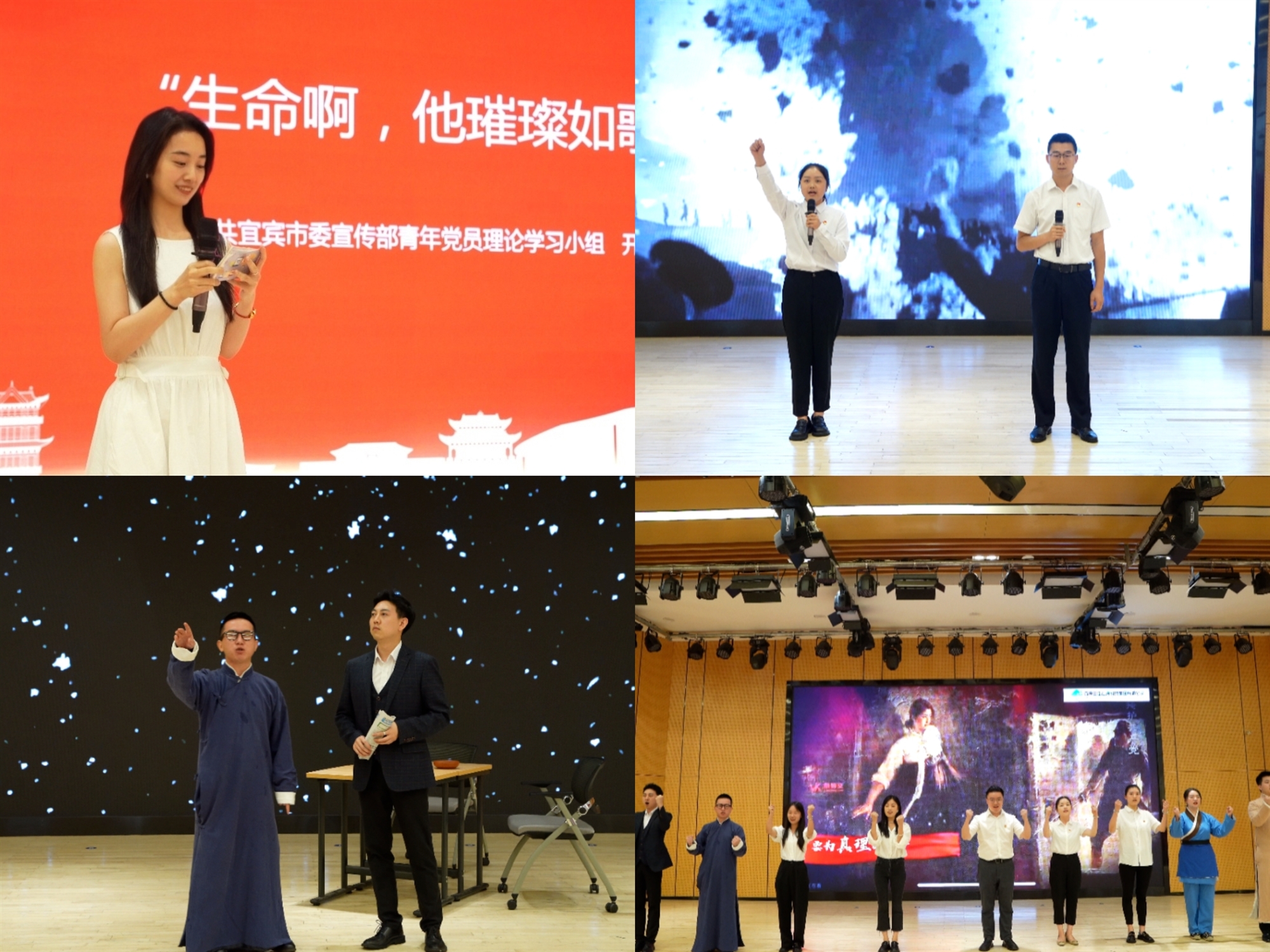 活動中,全體青年黨員、團員走進宜賓市博物館,探尋“長江首城”宜賓的民俗文化,感受宜賓歷史文化魅力。隨后在成都理工大學宜賓院區,市委宣傳部青年黨員理論學習小組和匯??萍技瘓F團支部分別進行了《青春中國》誦讀、《真理的味道非常甜》歷史情景劇表演,雙方圍繞活動主題進行交流分享,集體合唱《我相信》。活動中,全體青年黨員、團員激揚青春活力,堅定理想信念,保持奮斗姿態,展現出新時代新青年的時代風貌。