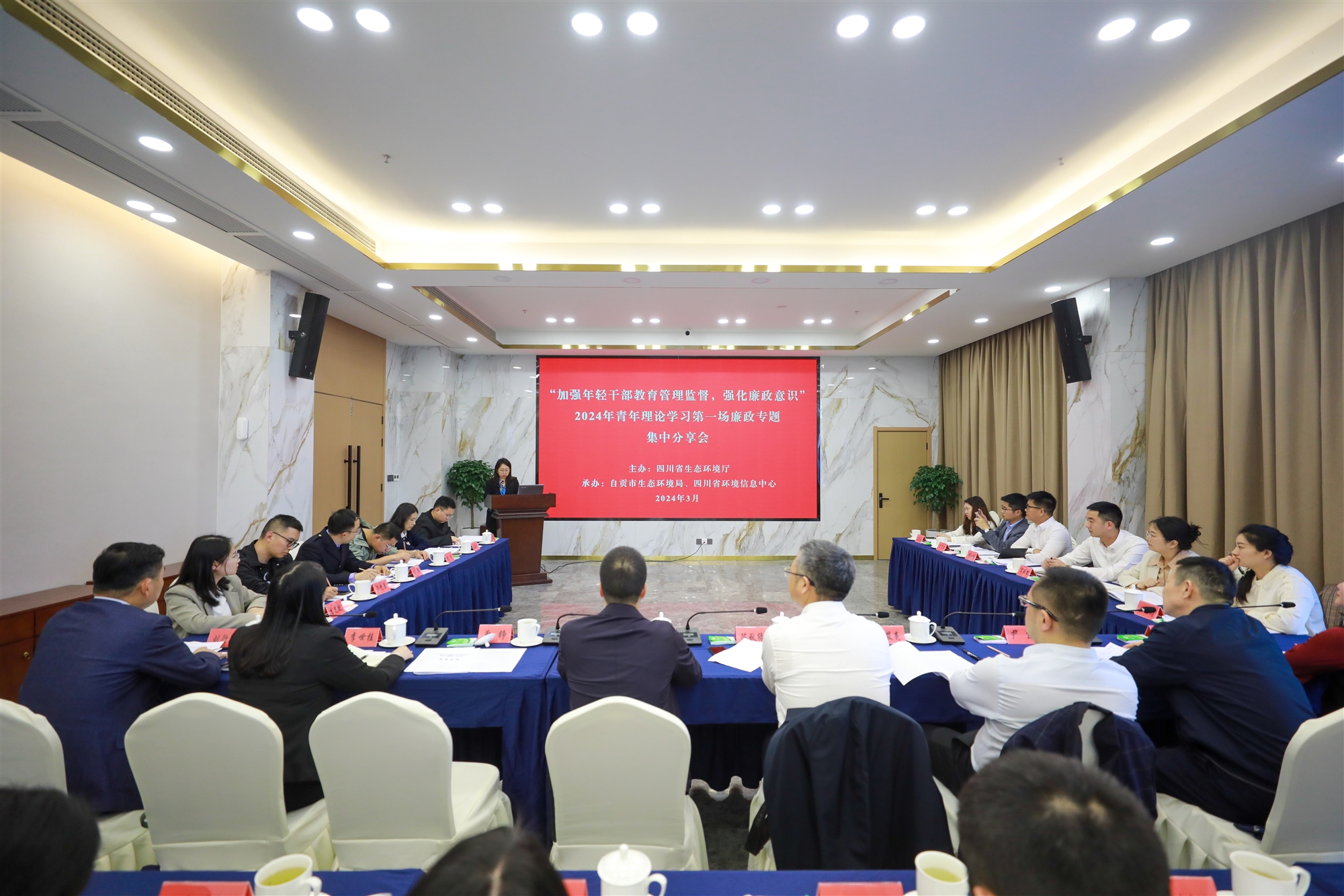 3月29日,生態環境廳以“加強年輕干部教育管理監督,強化廉政意識”為主題,舉辦青年理論學習廉政專題集中分享會。廳黨組成員、機關黨委書記陳秋綠出席活動并講話。