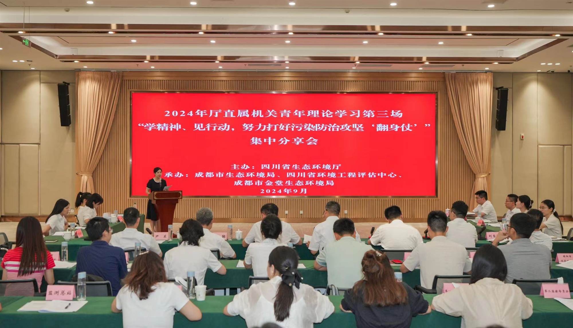 此次分享會(huì)由評(píng)估中心、成都市生態(tài)環(huán)境局、金堂生態(tài)環(huán)境局聯(lián)合承辦。廳人事處、機(jī)關(guān)黨辦負(fù)責(zé)同志,廳直屬機(jī)關(guān)各青年理論學(xué)習(xí)小組負(fù)責(zé)同志,相關(guān)市(州)生態(tài)環(huán)境局有關(guān)負(fù)責(zé)同志參加活動(dòng)。