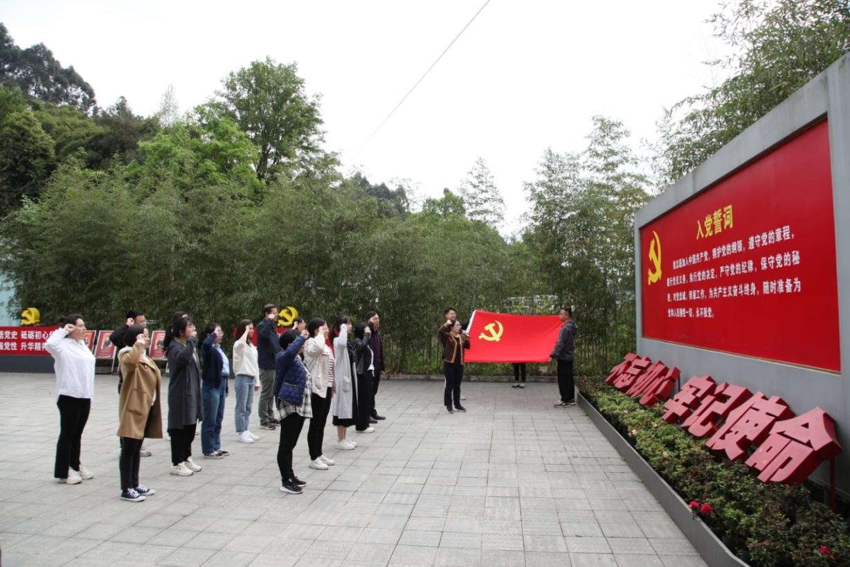 成都戰役紀念館位于四川省成都市蒲江縣西來古鎮銅鼓村,被四川省人民政府和省國防教育委員會命名為“四川省國防教育基地”。在講解員的帶領下,大家先參觀了展館,通過館里集中展示的文物、圖片、書籍,重溫了人民解放軍征戰西南、決戰川西、解放成都的戰斗歷程。隨后在成都戰役紀念碑前進行了莊嚴肅穆獻花儀式。最后在戰役紀念館廣場,全體黨員面對黨旗,由支部書記領誓,重溫了入黨誓詞,進一步讓黨員同志們感受了作為共產黨員的責任和使命。